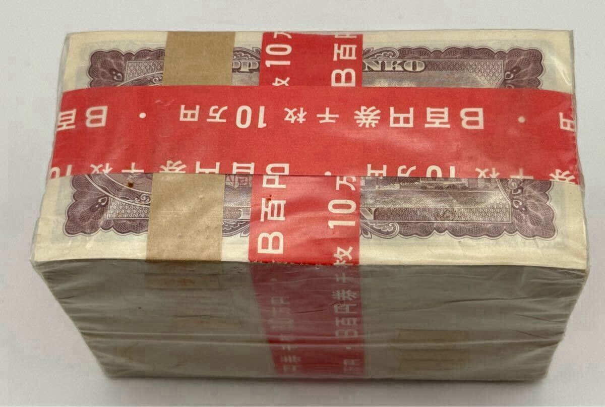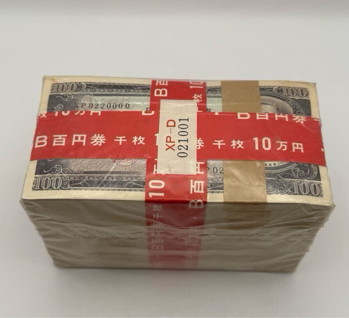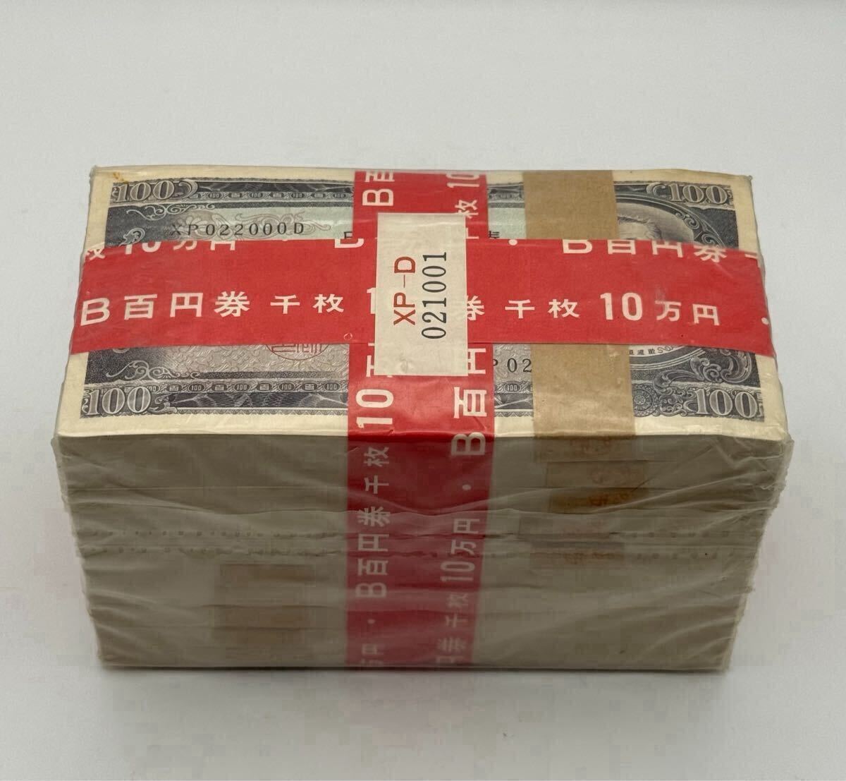 ★板垣退助 帯付き完封★100円札 10万円分 板垣退助 1000枚 赤帯 日本銀行券 ピン札 未使用未開封 赤帯 大蔵省封印 XP021001D〜XP022000D