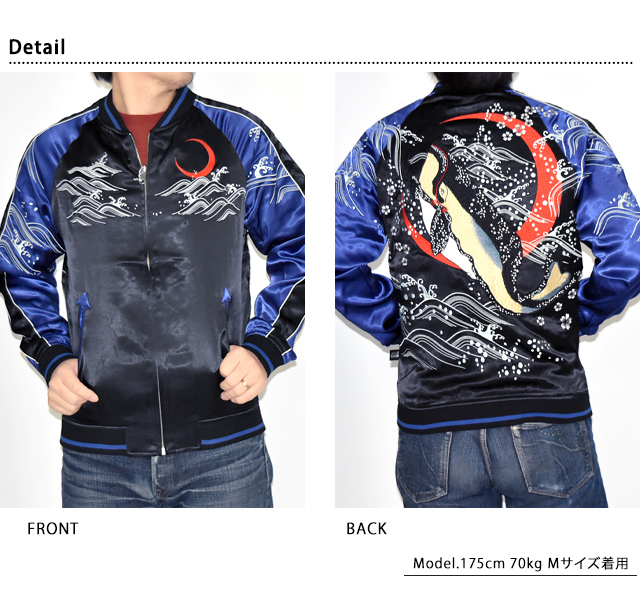 何でもあり、何でもやる新ブランド「LIN」から【楔】「浮世絵ノ鯨」ALL刺繍リバーシブルスカジャン(AL-75625)のご紹介です。 浮世絵調の絵柄を背中に落とし込んだ、総刺繍スカジャンが登場しました。 柄は身頃から袖へと続いており、実際に着用した際にはより立体感をお楽しみいただけます。 また、こちらのスカジャンはリバーシブル仕様になっています。 裏面は背中にワンポイントのシンプルなスカジャンですので、合わせるアイテムによって表裏使い分けて頂くことが出来ます! ボディーにはてろんとしたレーヨンサテンを採用しました。 1枚持っているだけでずっと使えるアイテムです。 | ||||||||||||||||||||