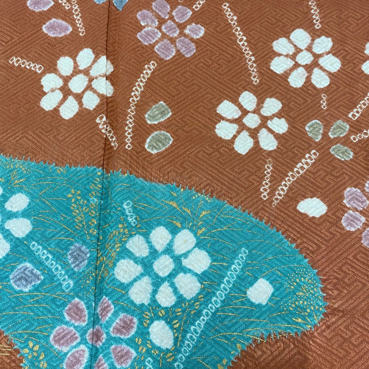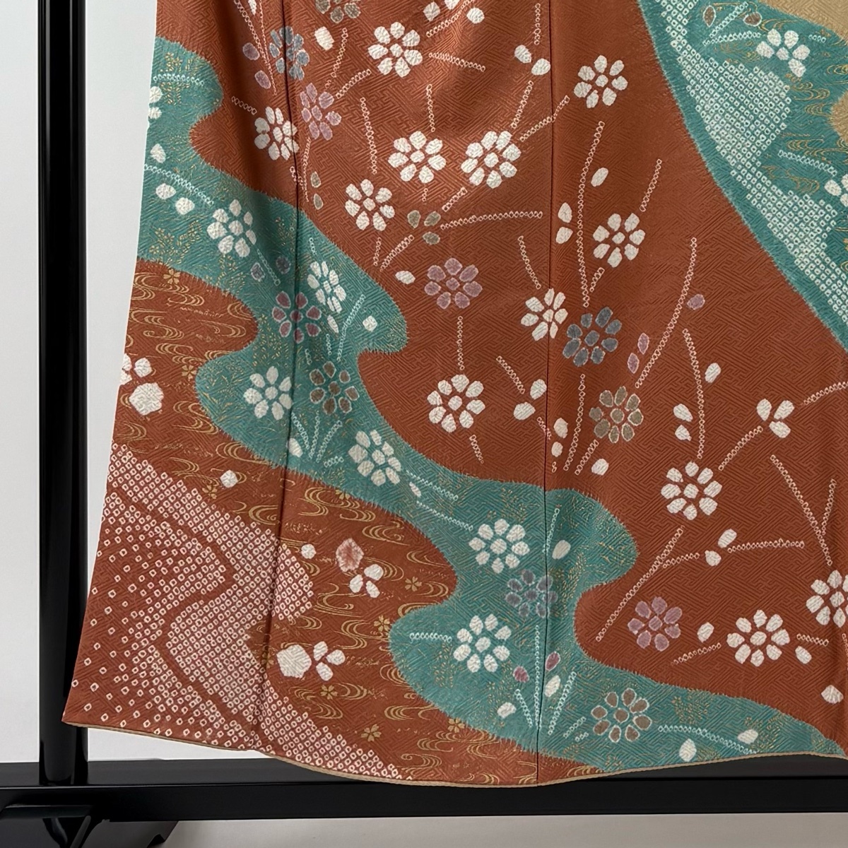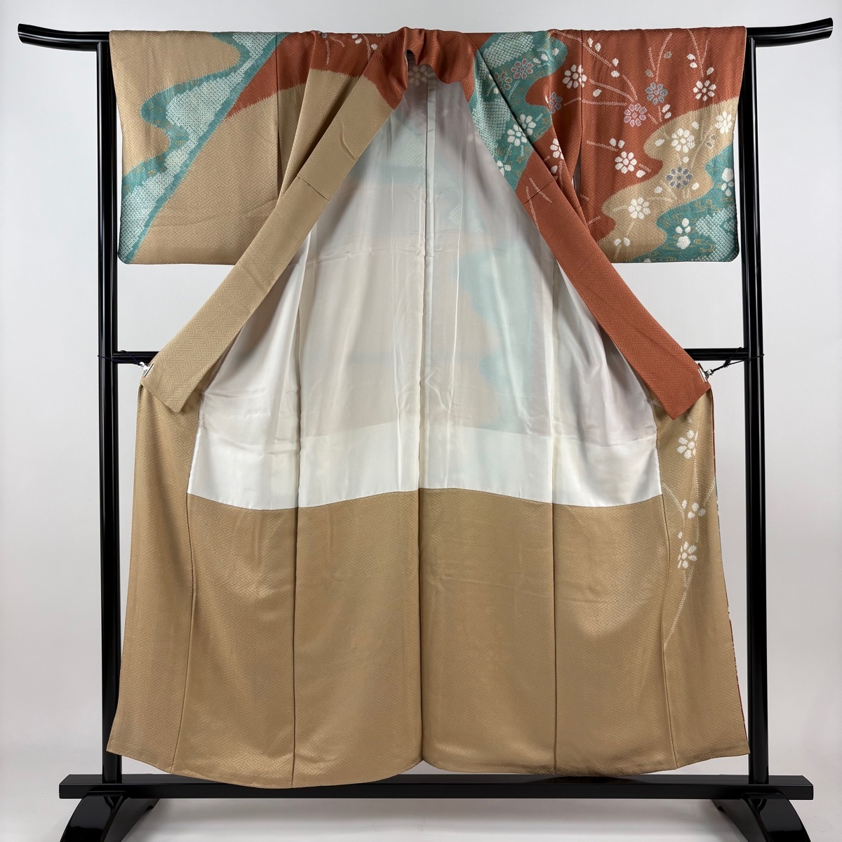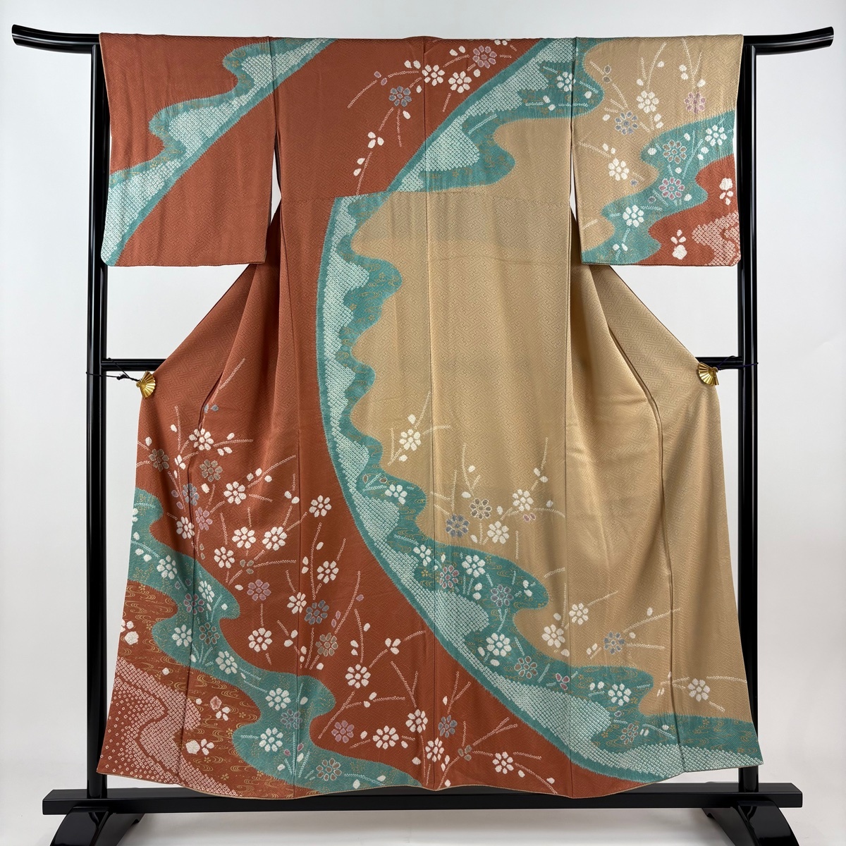 | 訪問着 美品 名品 草花 流水 金彩 ぼかし 赤茶 袷 身丈155 裄丈64 M 正絹 【中古】 |