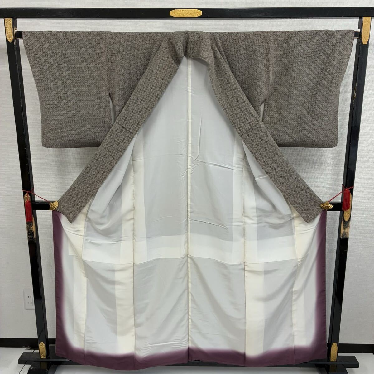 【楓】小紋 正絹 パールトーン 染めの粋なデザイン 袷 着物 KK-1754