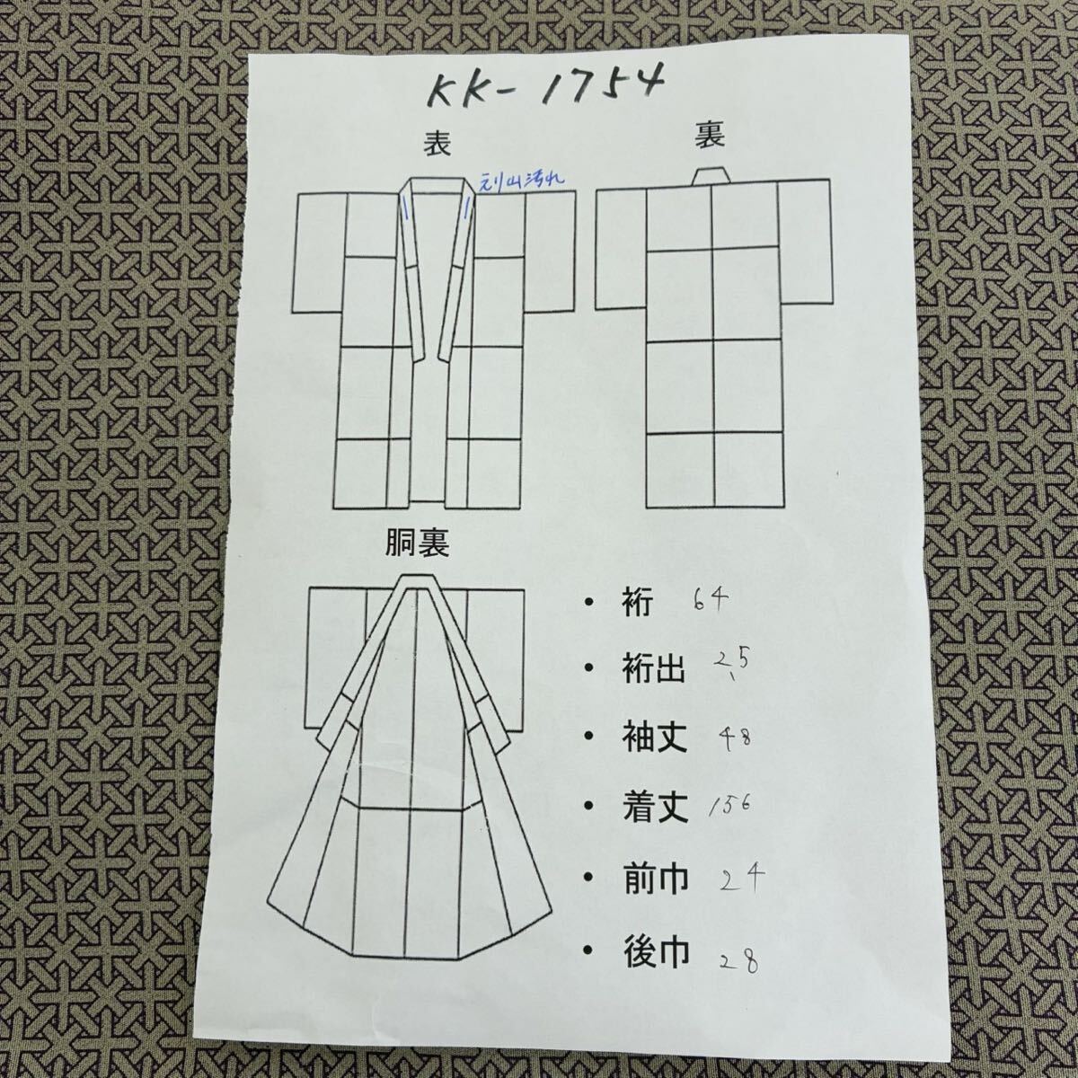 画像内に検品表を掲載しております。