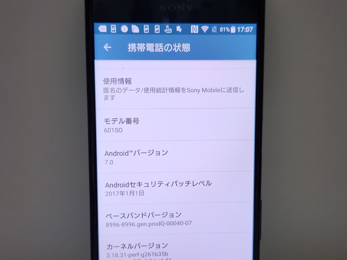 ★【66120WM】 ジャンク SoftBank 601SO SONY Xperia XZ フォレストブルー 1円 ! 1スタ !