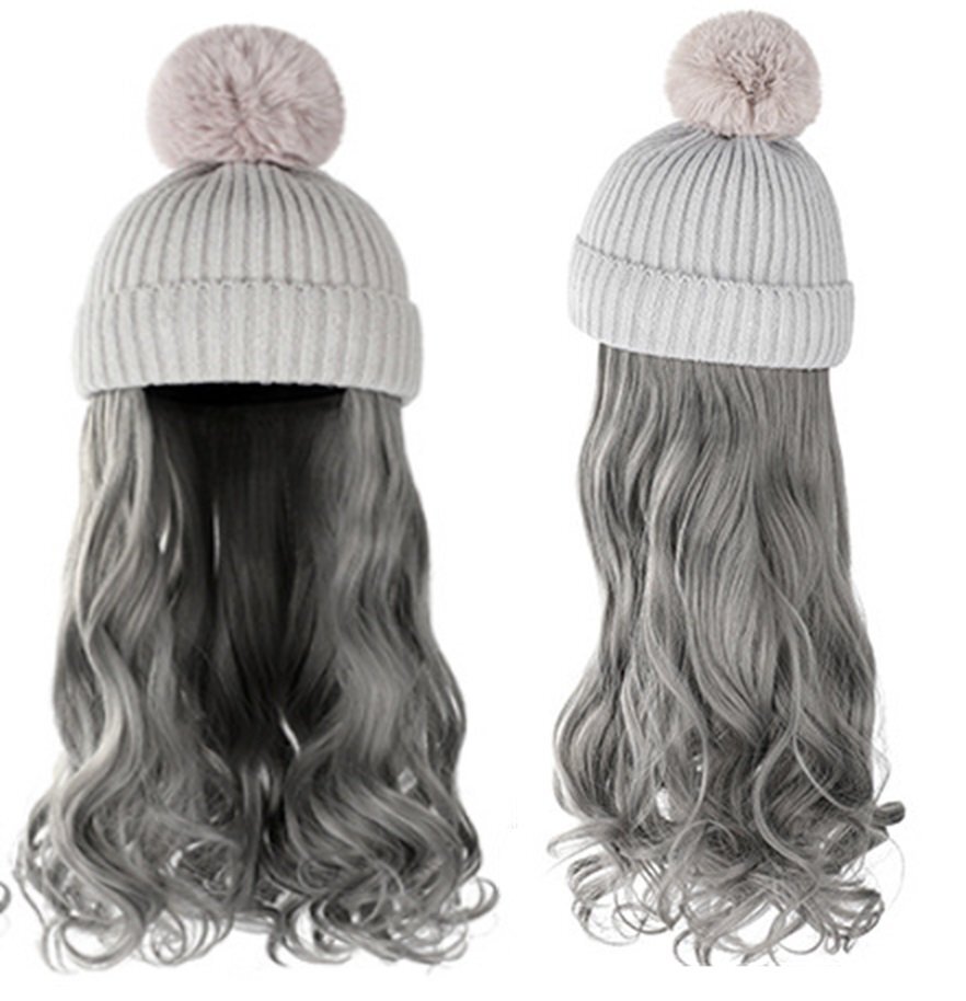 ウィッグ付きニット帽 ニット帽/グレー ウィッグカラー/F ロングヘアー カール イメチェン 髪色チェンジ コスプレ n467