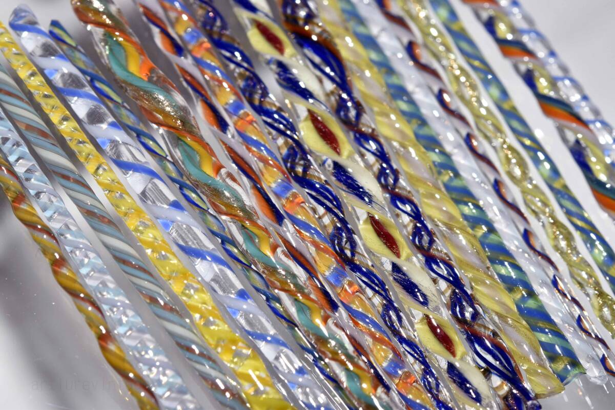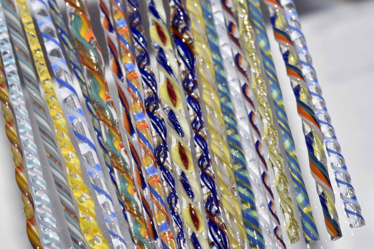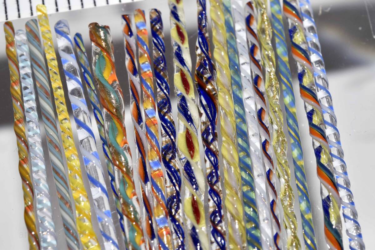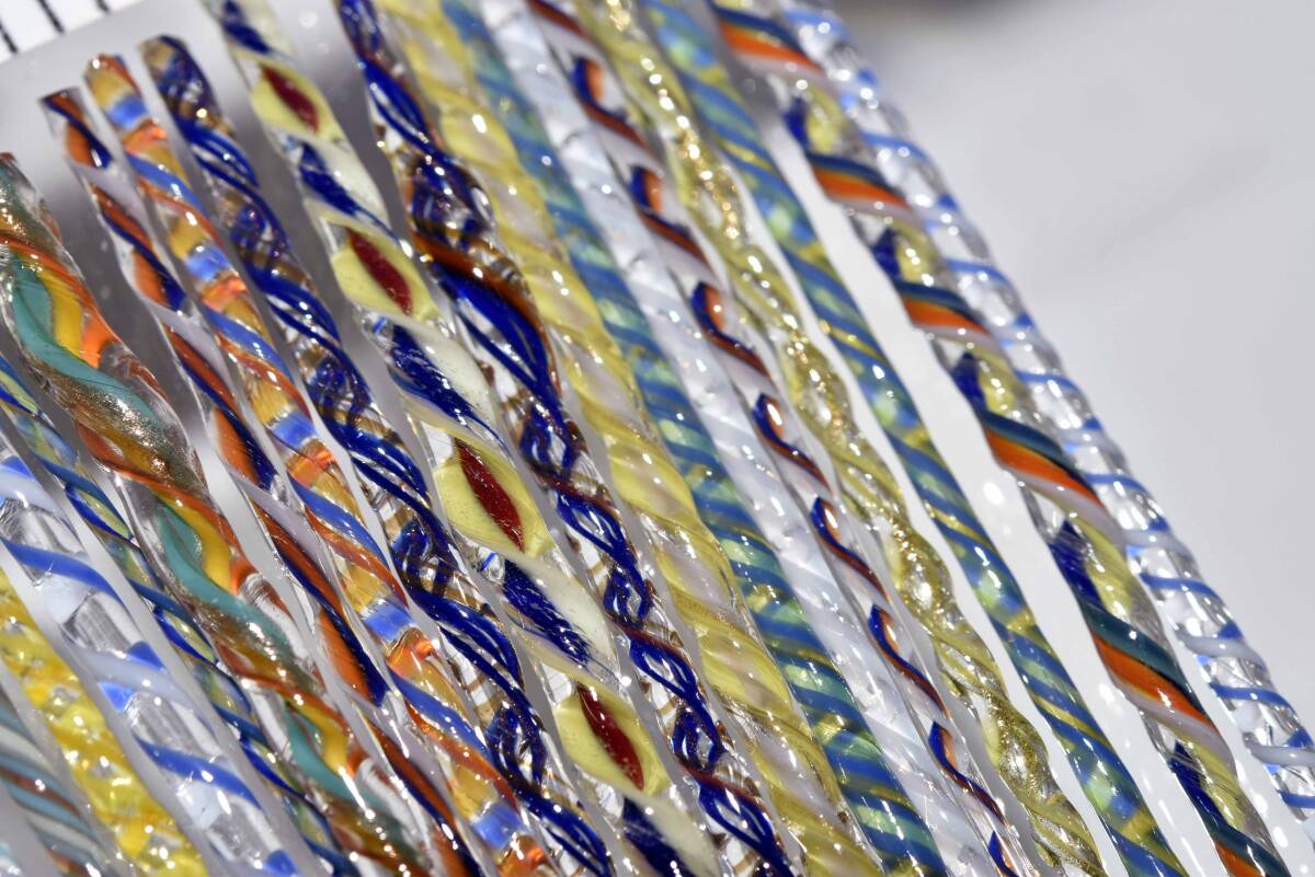 モレッティの細密ガラスレース棒、ツイスト棒、ガラス棒、トンボ玉、万華鏡、