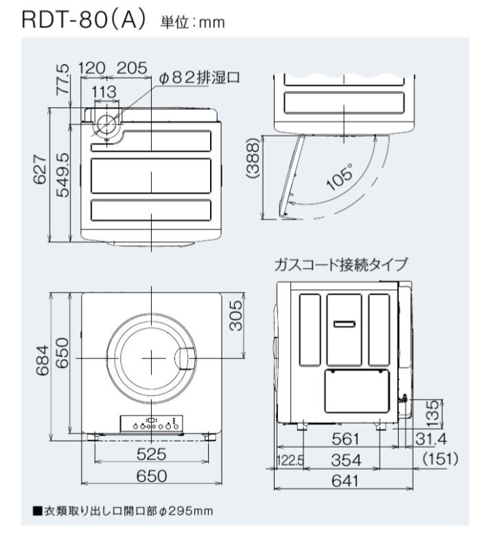 新品 都市ガス リンナイ ガス衣類乾燥機 乾太くん RDT-80(A) 乾燥容量8kg  ガスコード接続タイプ