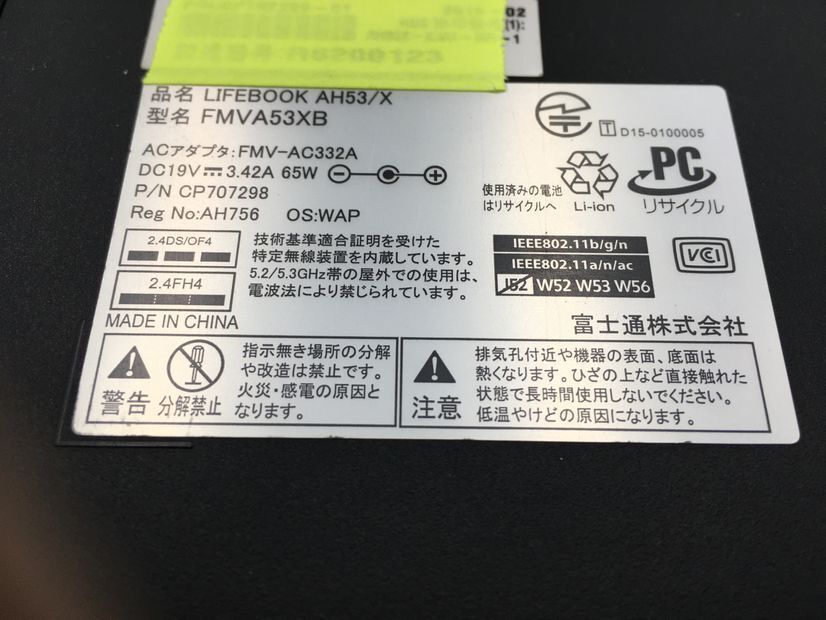 【記憶媒体無】FUJITSU/ノート/第6世代Core i7/メモリ8GB/WEBカメラ有/OS無/パーツ取り