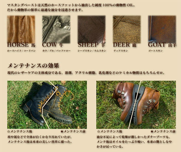 レザーメンテナンス 天然ホースオイル (馬油) マスタングペースト 100ml