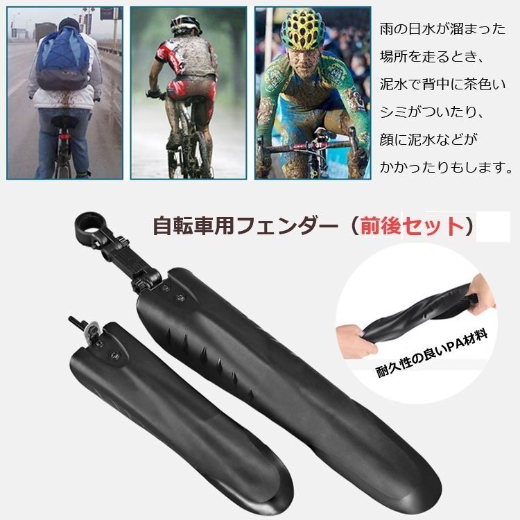 ◆自転車マッドガード泥よけ フェンダー 前後セット 後ろ角度調整可 自転車、ロードバイク、クロスバイクなどに 耐久性 簡単に装着 フロントとリアセット TOREMUG150
