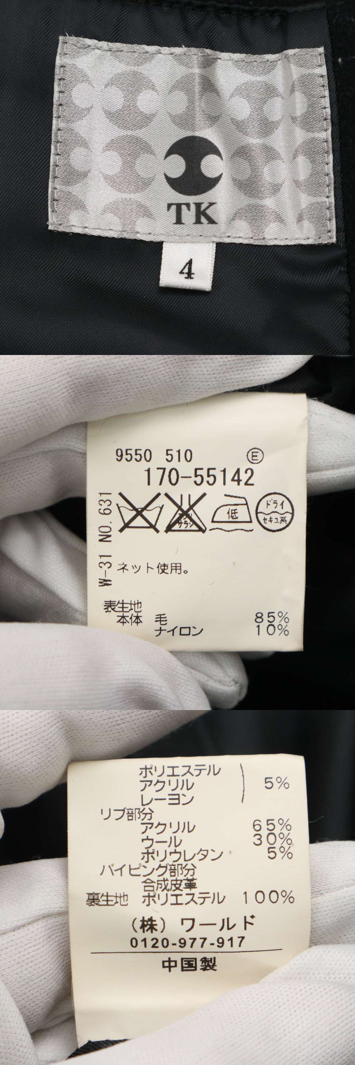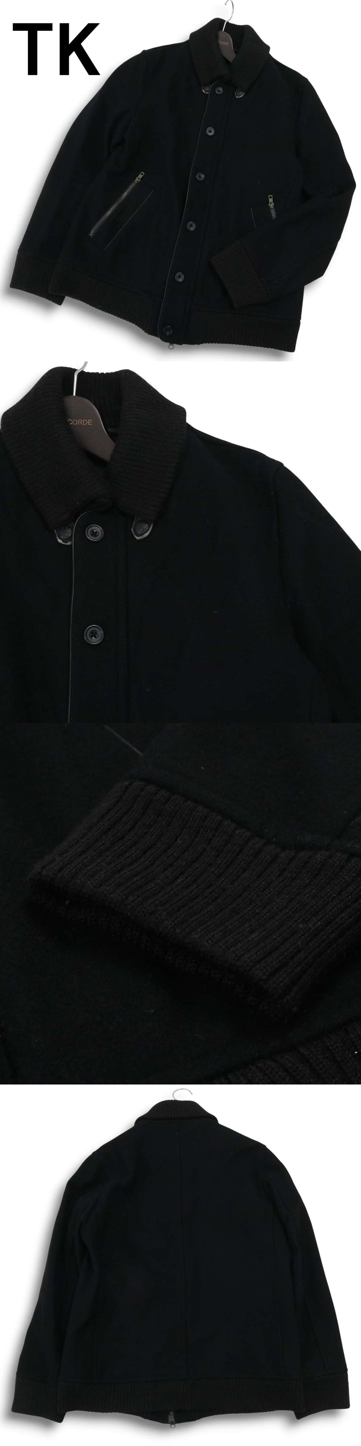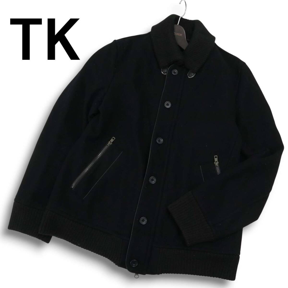 TK タケオキクチ 秋冬 メルトン ウール★ ドンキーカラー ジャケット Sz.4 メンズ 黒 大きいサイズ