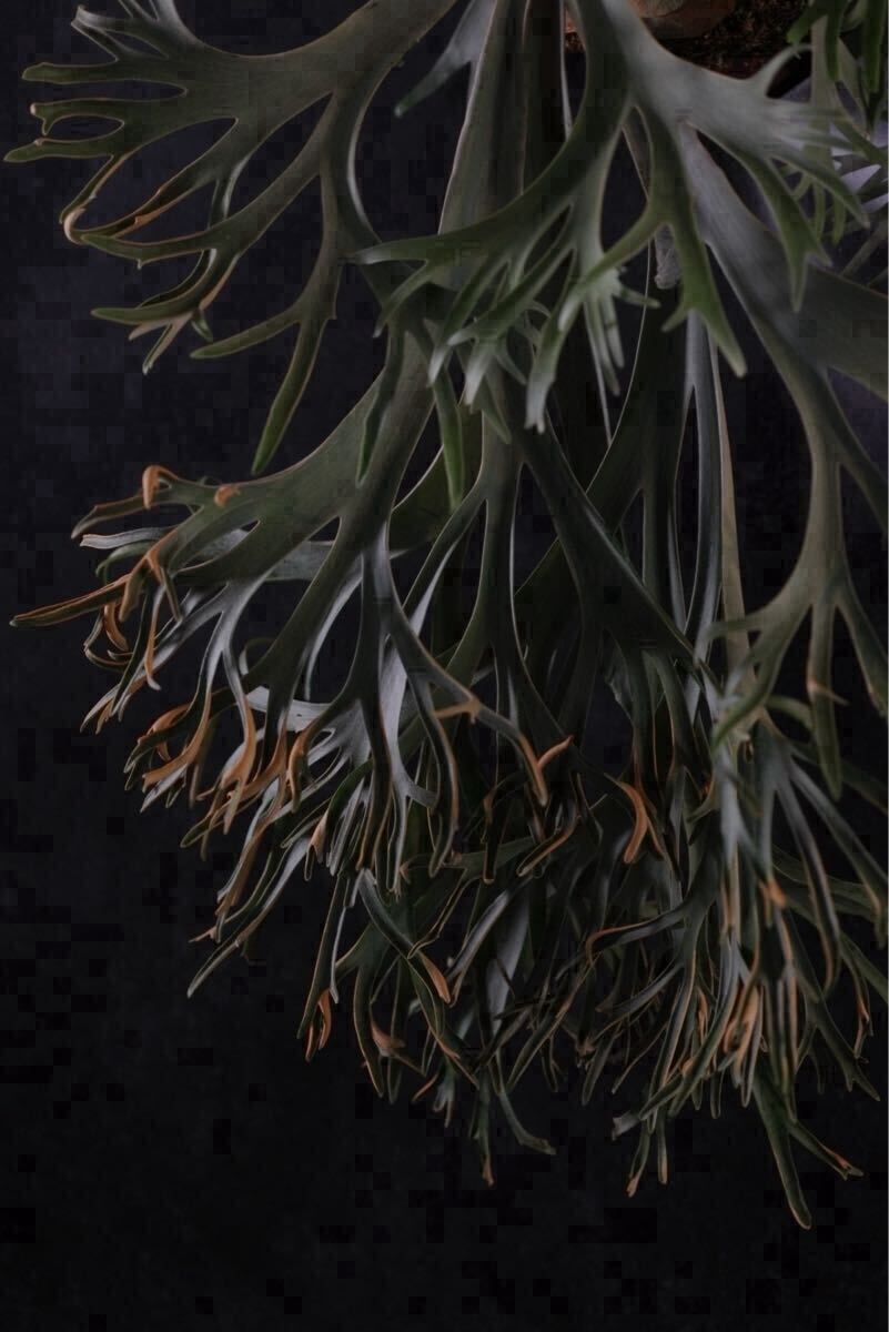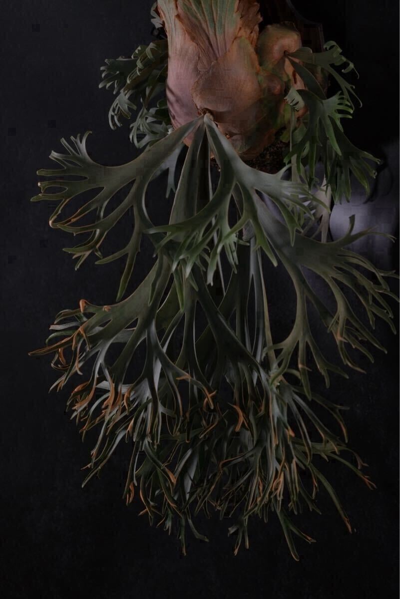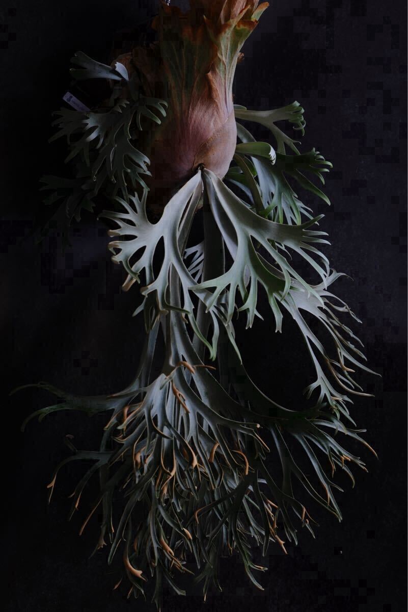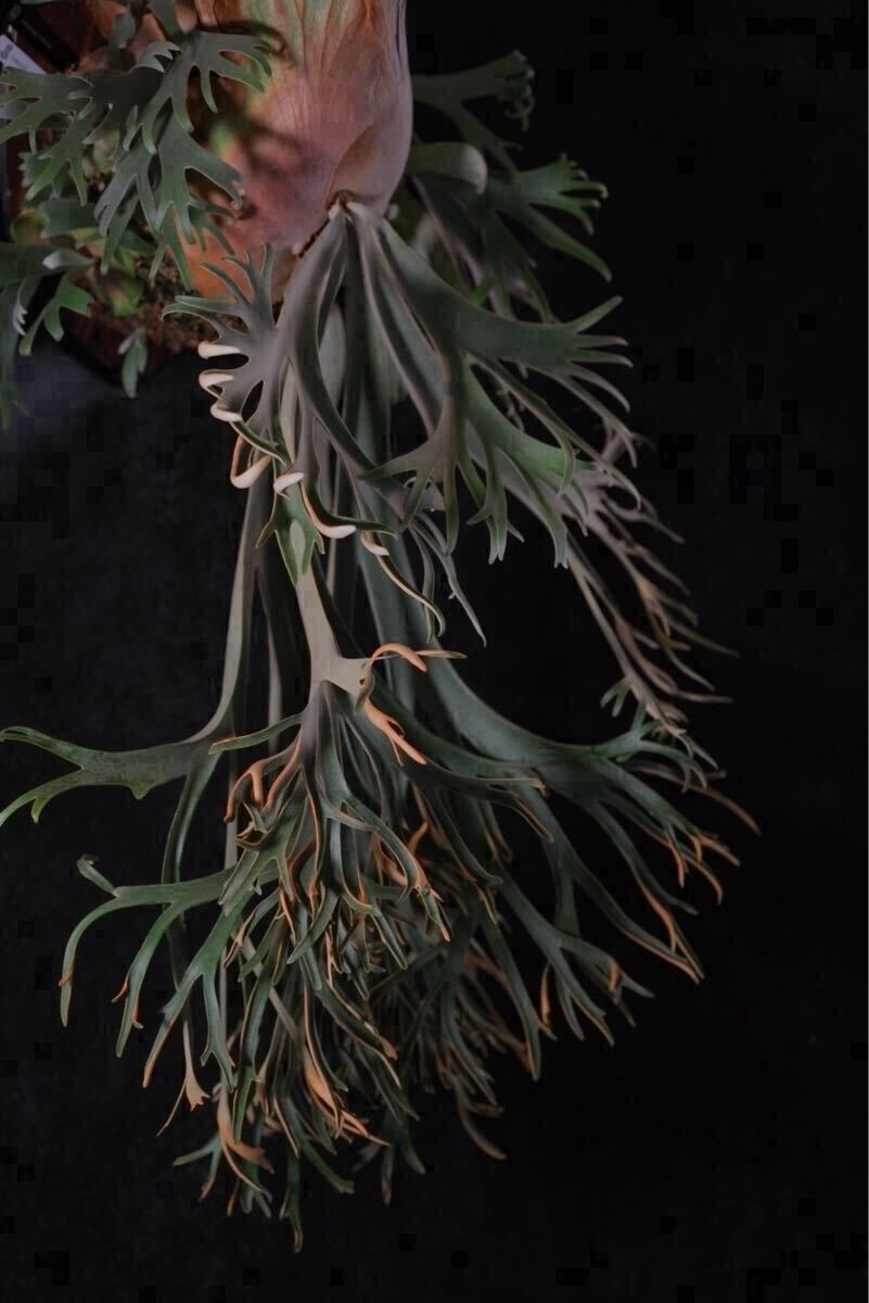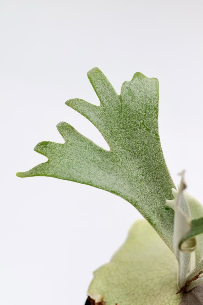 長いこと親株に付いた状態だったため、胞子葉の向きが綺麗に展開していませんがこれから成長と共に美しい葉が展開してきます。親株のエネルギーを充分に吸い、成長点も大きく既に立派なサイズとなっています。