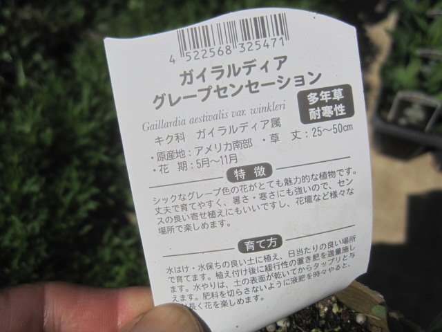 ガイラルディア苗 『グレープセンセーション』 10.5センチポット 耐寒性宿根草 暑さ、寒さに強い