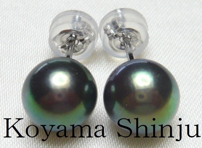 絶品カラー!グリーンブラック系あこや本真珠パールピアス |