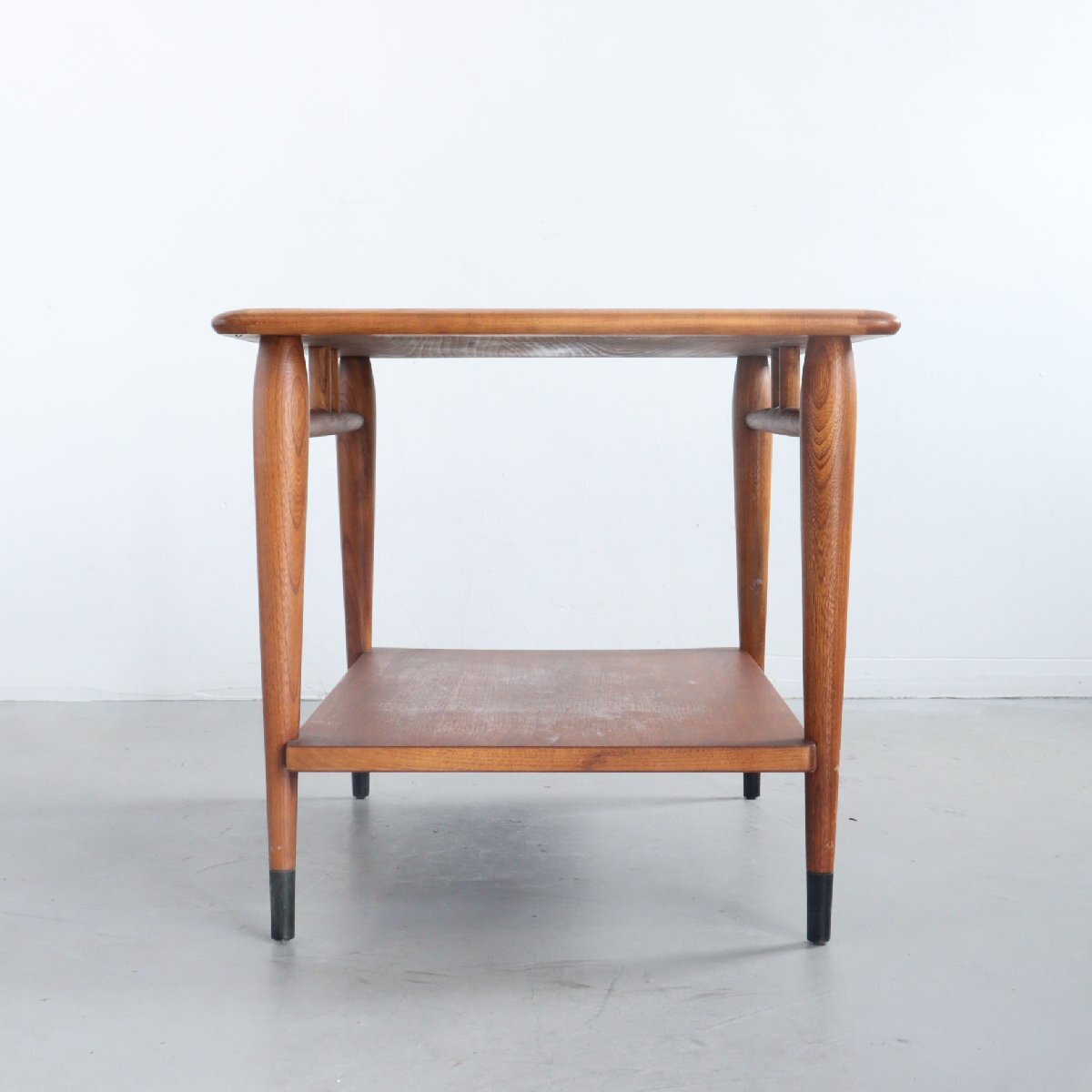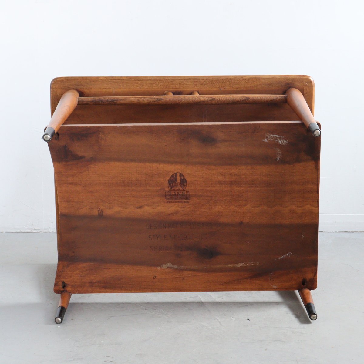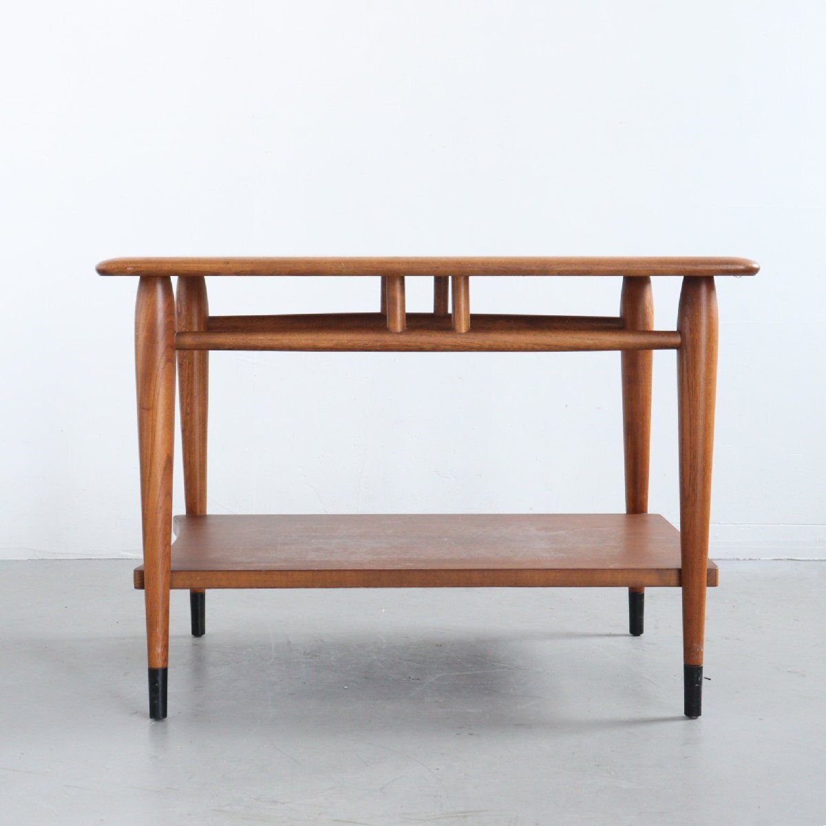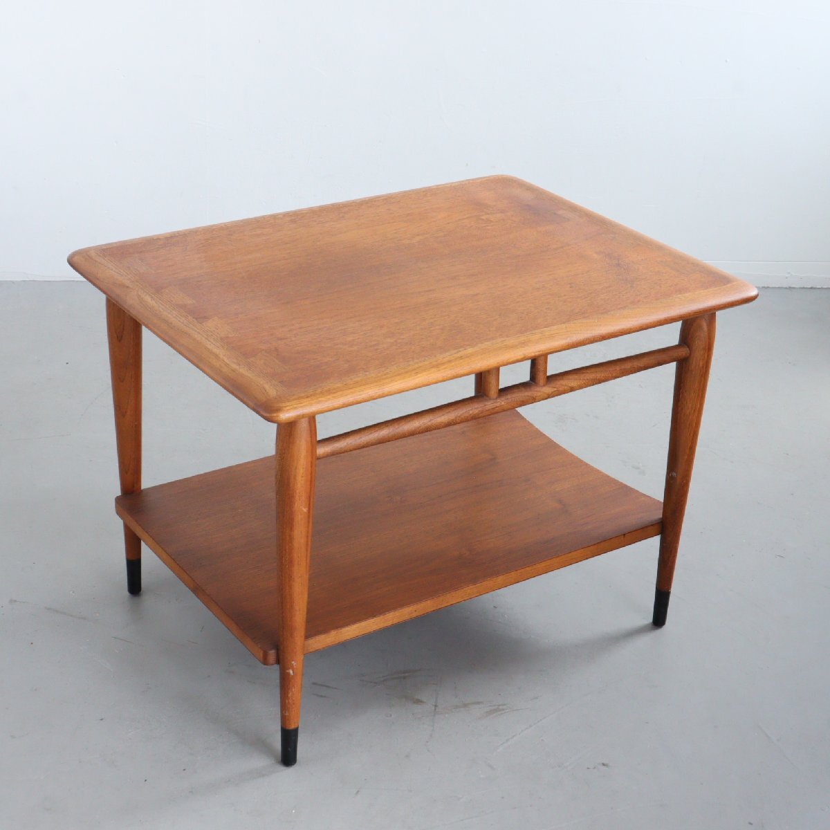 | 商品説明 explanation | ミッドセンチュリーを代表する、アメリカの家具メーカー 【LANE】社のサイドテーブルです。(1962年製) ACCLAIMシリーズのもので、ダブテイルという天板の端に鳩の尾のような組木模様がデザインされています。 天板はウォルナット×オーク材で綺麗な木目です。 大きすぎないサイズ感なので、寝室やリビング、ソファサイドなどに最適です。 ご自宅やお店のインテリアにいかがでしょうか。 |