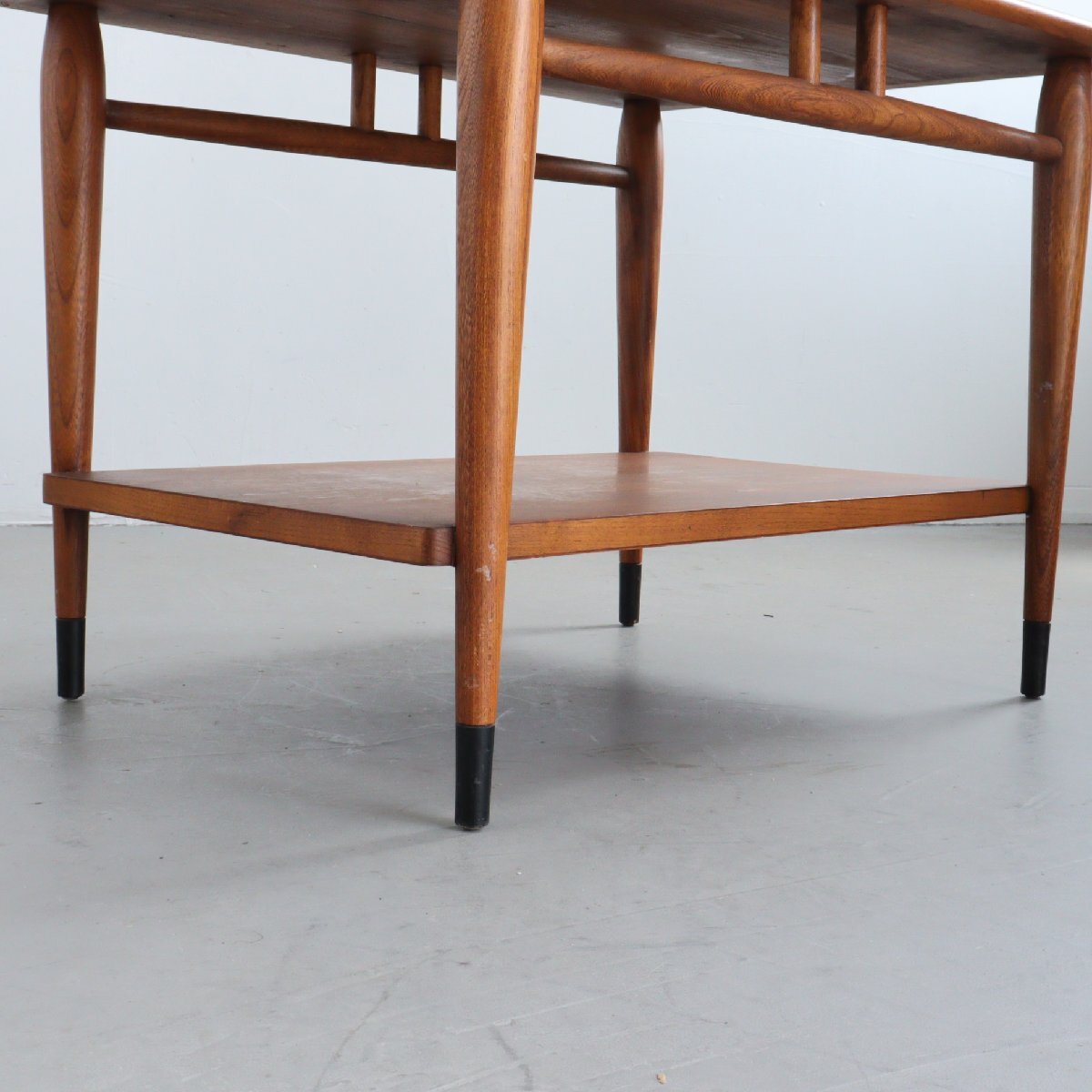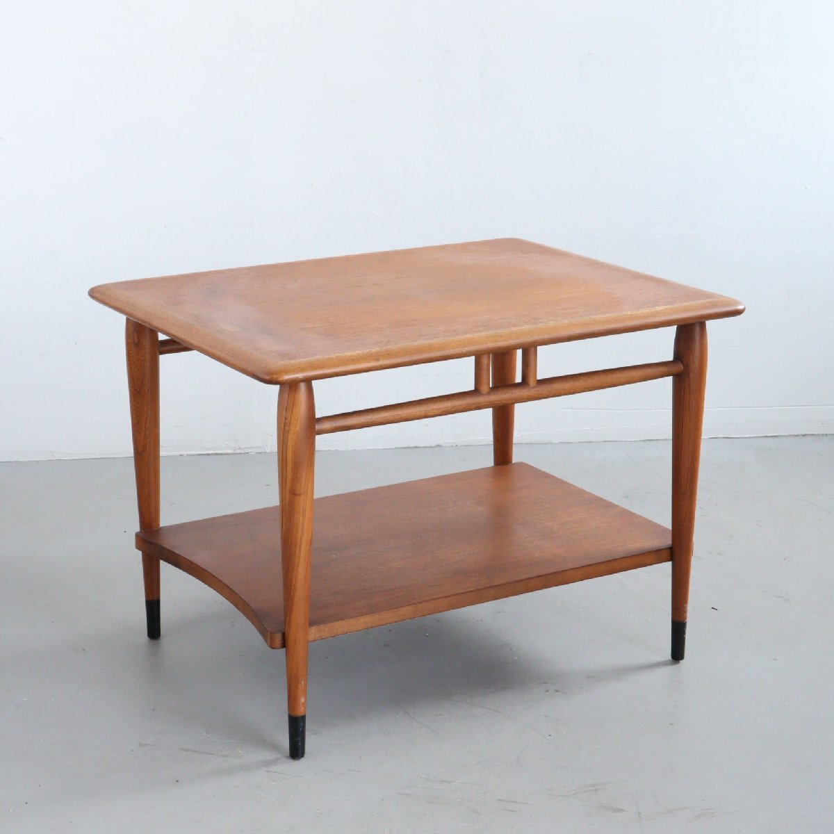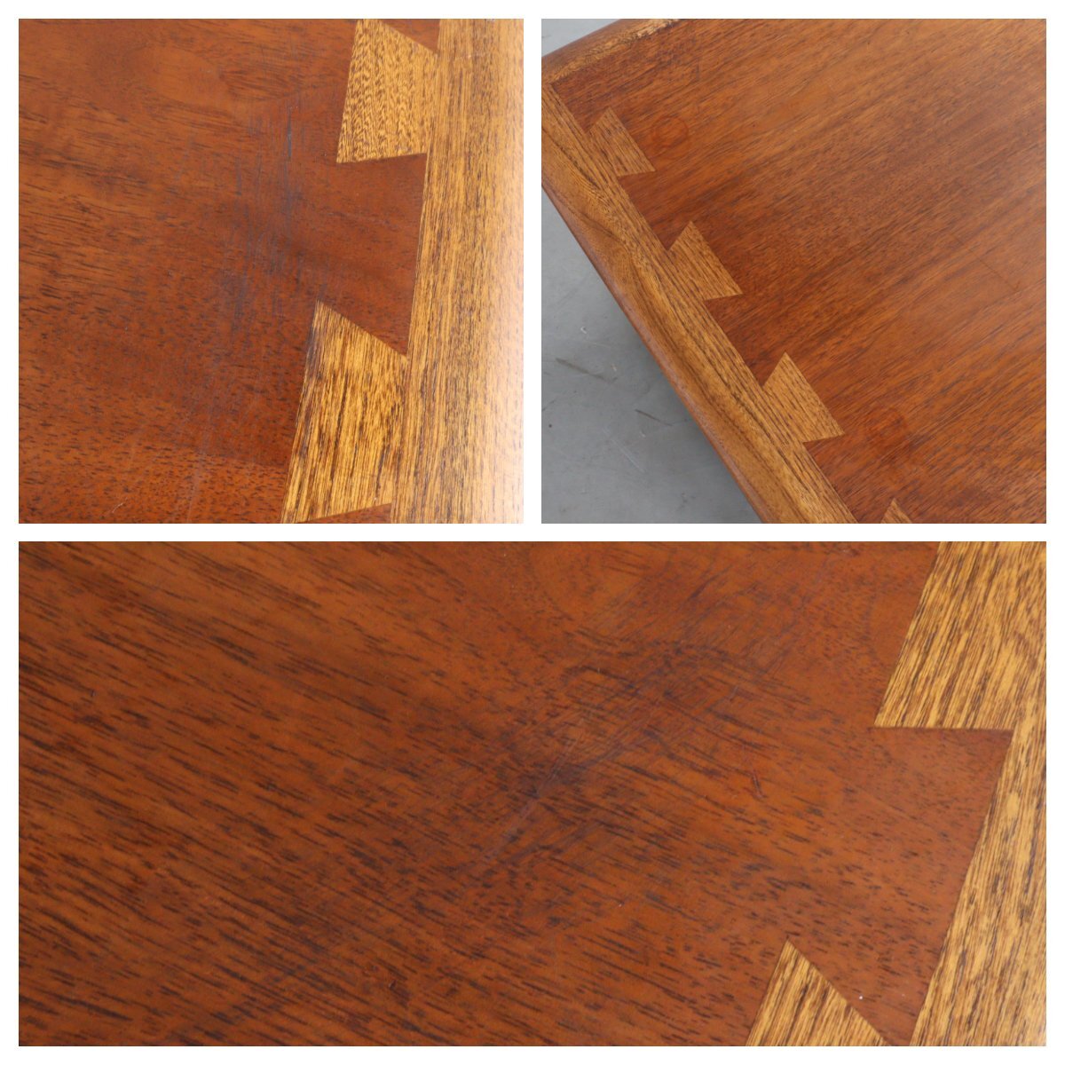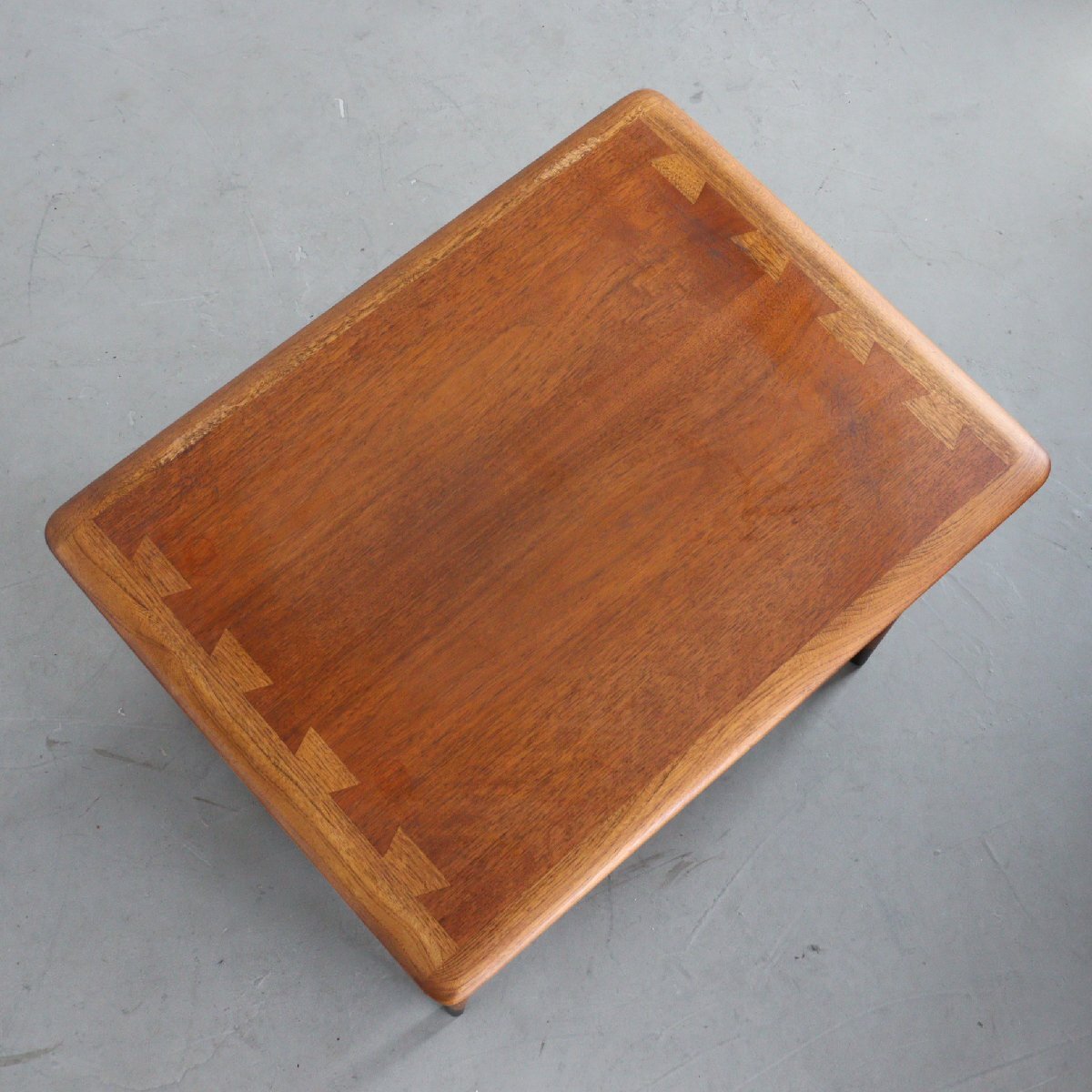 | 商品説明 explanation | ミッドセンチュリーを代表する、アメリカの家具メーカー 【LANE】社のサイドテーブルです。(1962年製) ACCLAIMシリーズのもので、ダブテイルという天板の端に鳩の尾のような組木模様がデザインされています。 天板はウォルナット×オーク材で綺麗な木目です。 大きすぎないサイズ感なので、寝室やリビング、ソファサイドなどに最適です。 ご自宅やお店のインテリアにいかがでしょうか。 |