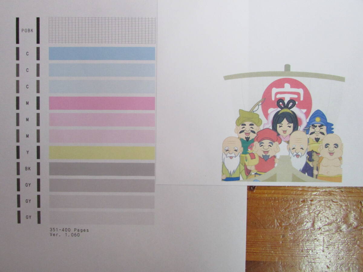 印刷結果の画像を参照し、判断してください。インクは顔料黒、イエローは純正インク、その他は詰め替えインクです。詰め替えインクについては純正タンクにインク注入、リセット済みで、残量表示も出ています。インクは、ほぼ満タンですが、お届け後、アイドリングでもインクは消耗するため、減った表示になるインクもあるかもしれません。ご理解ください。画像のものがすべてです。ご確認ください。CD-Rトレイ、電源コードが付属します。トラブル回避のため、お手元に届き次第、動作確認をお願いいたします。