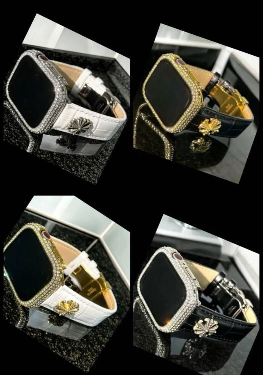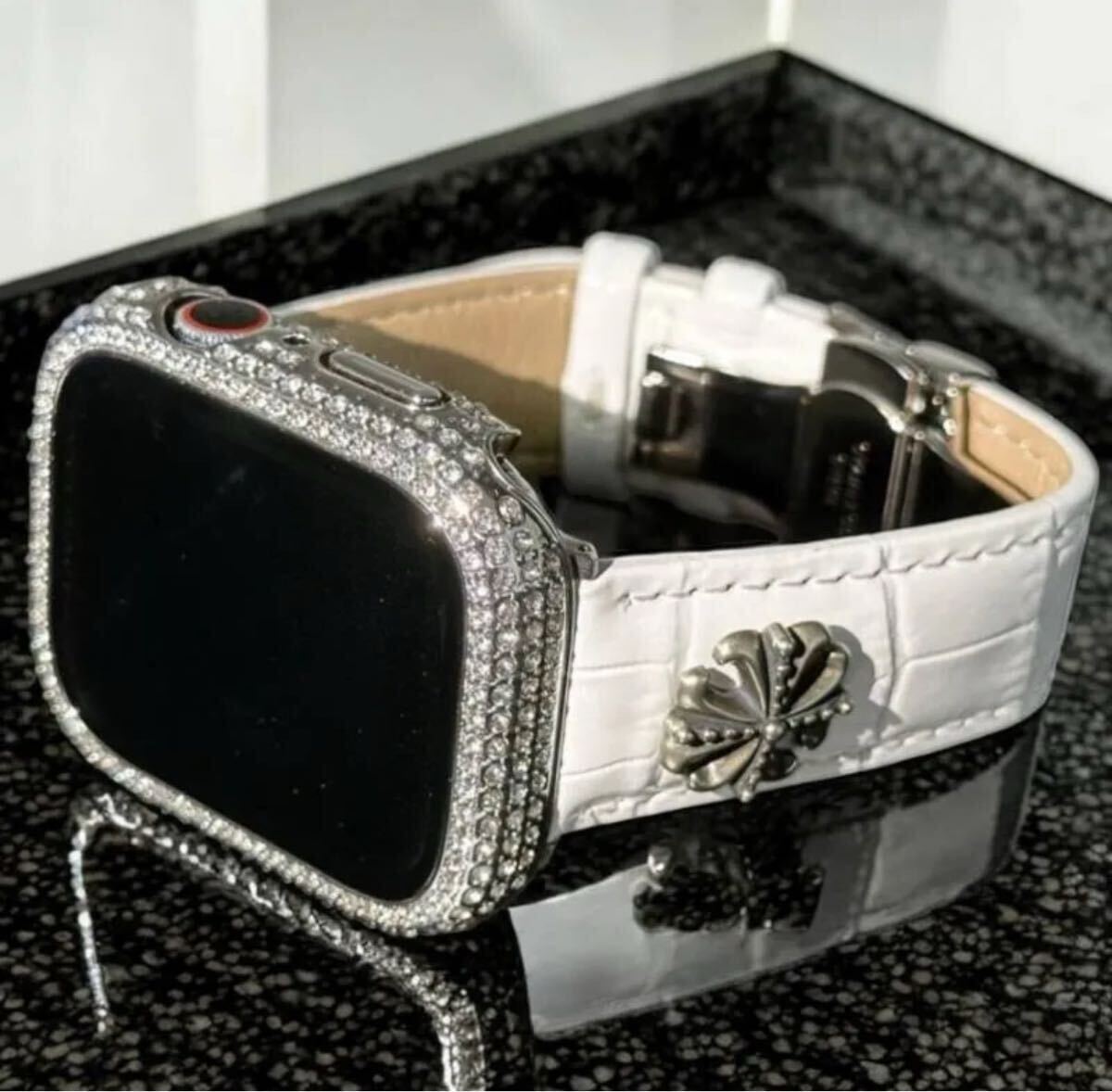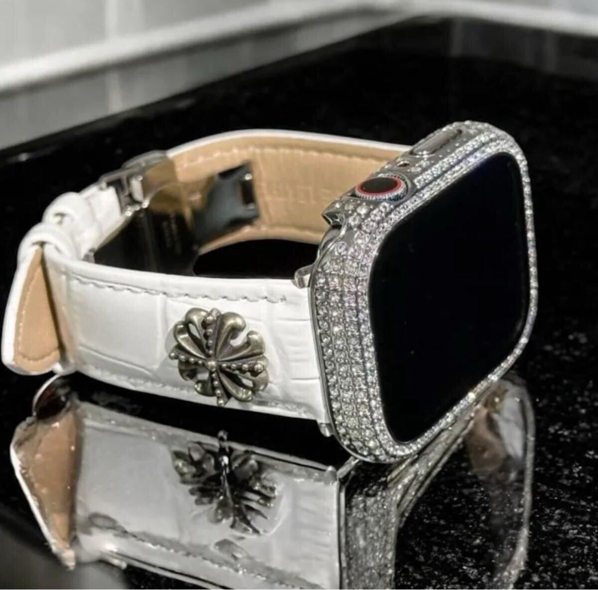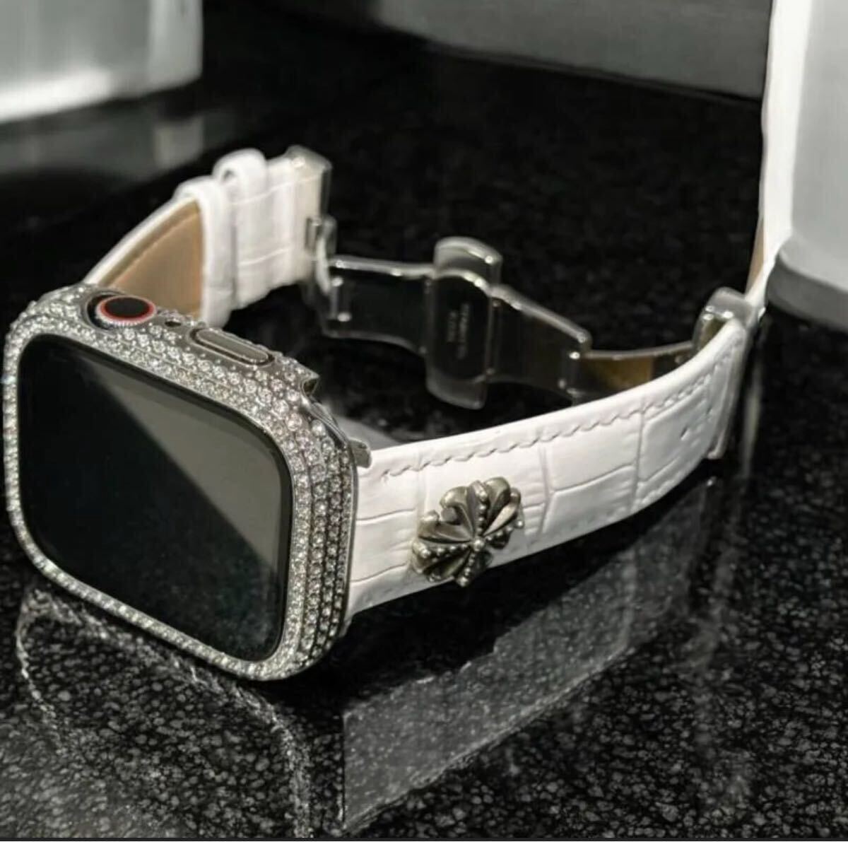 アップルウォッチ ケース 38 40 41 42 44 45 46 49 カスタム カバー ギフト キラキラ ベルト レザー バンド シルバーホワイト