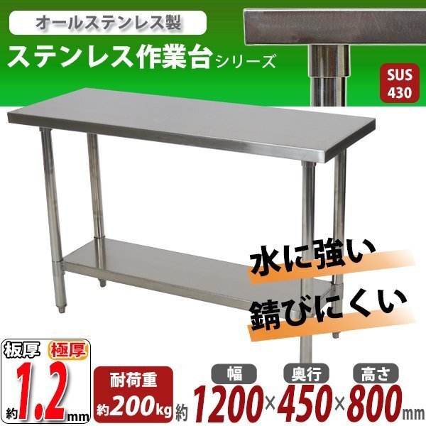 | 商品名 | 送料無料 オールステンレス作業台 2段 耐荷重約200kg 約幅1200×奥行450×高さ800mm 板厚約1.2mm SUS430 エコノミーモデル ステンレステーブル ワークテーブル ステンレス台 業務用 調理台 キッチンテーブル 調理 棚付き 作業 机 ステンレス製 二段 キッチン 厨房 wtsteco4501200 |
