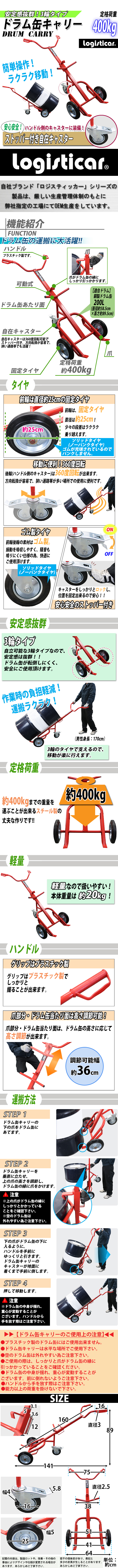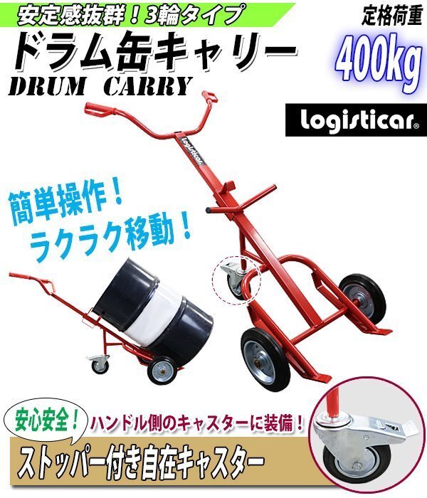 | 商品名 | 送料無料 ドラム缶キャリー 定格荷重400kg キャスター付 ストッパー付 3輪 スチール 赤 ドラム缶運搬車 ドラムキャリー ドラム缶ドーリー ドラム缶 運搬車 台車 ドラム台車 スタンド キャリー カート 運送 ハンドル 自立 レッド drumcarry1hj |