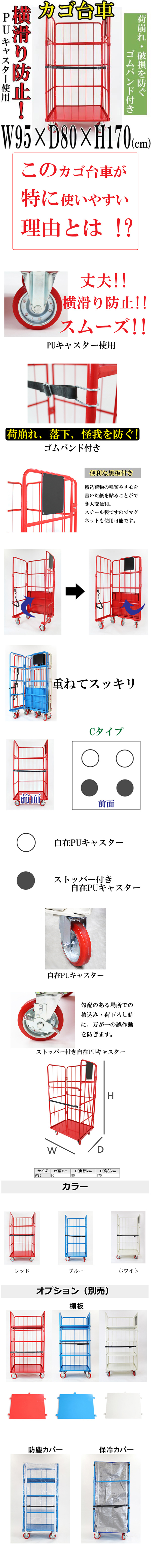 | 商品名 | カゴ台車 かご台車 カゴ車 ロールボックス ロールパレット パレット 看板黒板 業務用台車 W95×D80×H170(cm) Cタイプ レッド |