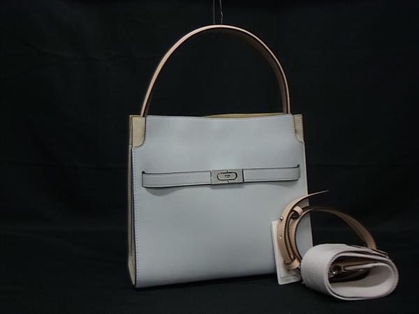 1円 ■美品■ TORY BURCH トリーバーチ リー レザー×スエード 3WAY トートバッグ ショルダー ライトブルー系×ベージュ系 FU6707