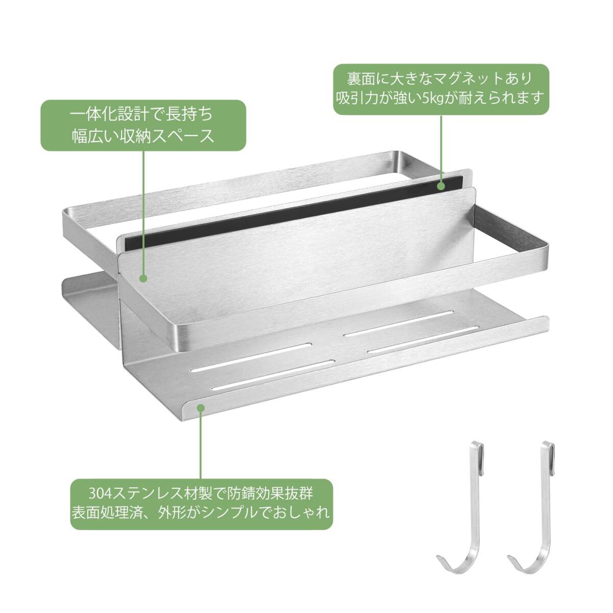 バスルーム ラック 浴室用ラック マグネット お風呂の壁に ステンレス シャワーラック 水切り 風呂場洗面所収納 フック付き