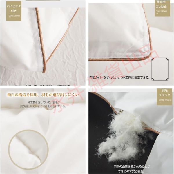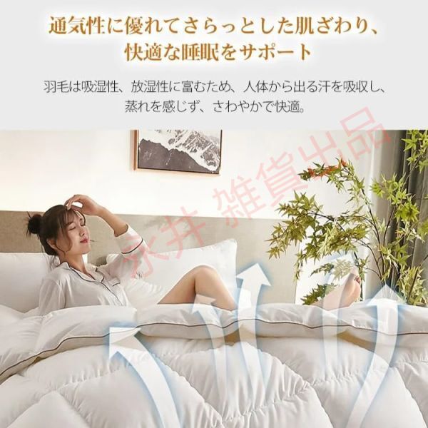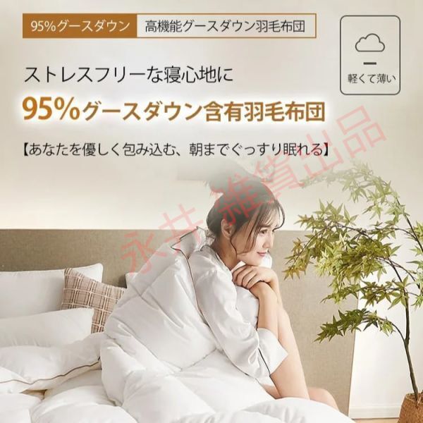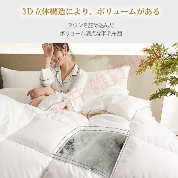 【重量】 約 3kg 【製品詳細】 1 高品質のホワイトグースダウンを95 使用し 軽くてふわふわした肌触りで 保温性に優れています 高カウント 高密度のコットンアンチフェザーファブリックを採用し 肌に優しく通気性に優れ 冷気の侵入を防ぎ 一晩中ぐっすり眠れます