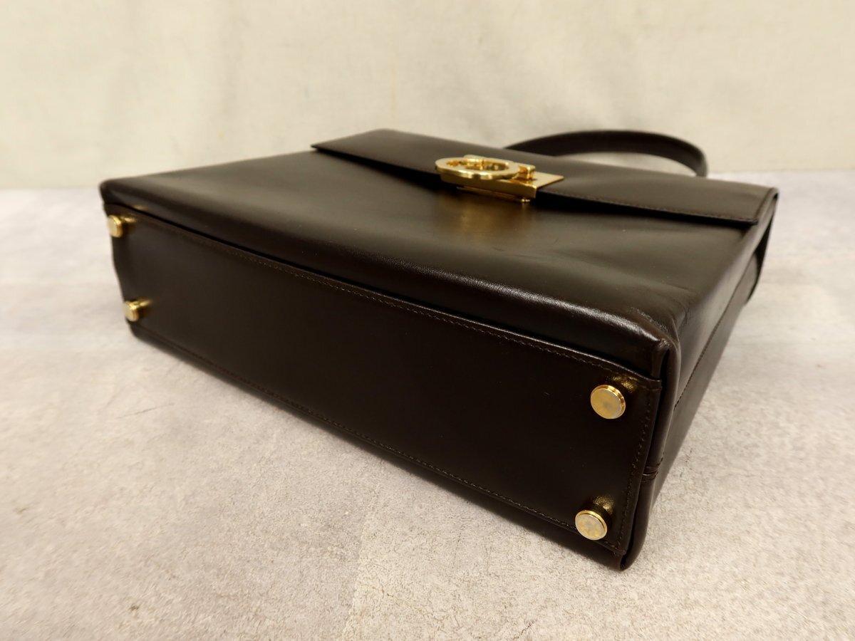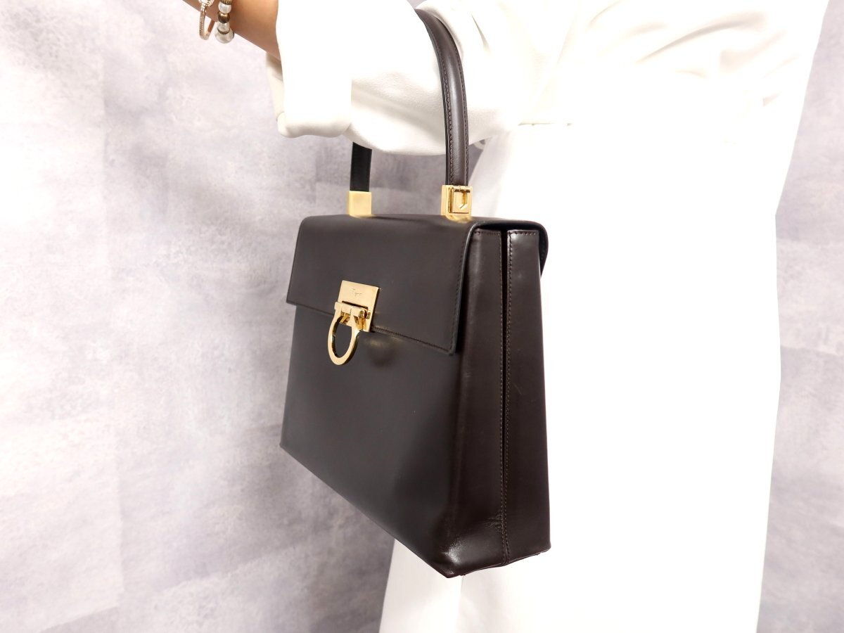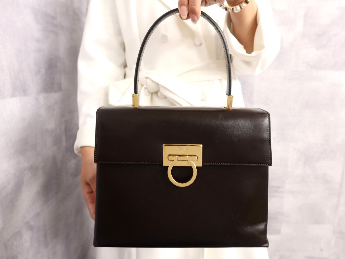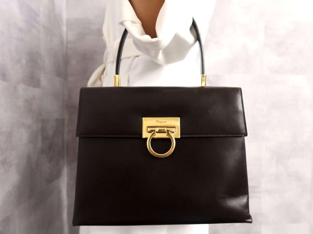 ●超美品●Salvatore Ferragamo フェラガモ●ガンチーニ●カーフ レザー 本革●ハンド バッグ●ブラウン●ゴールド金具●腕掛け●Js62267