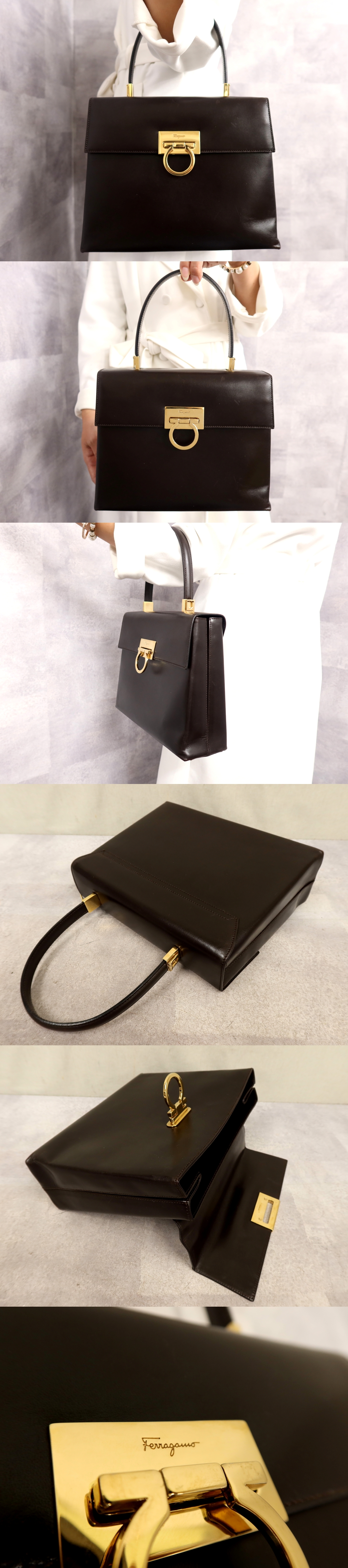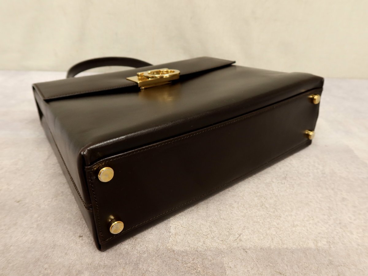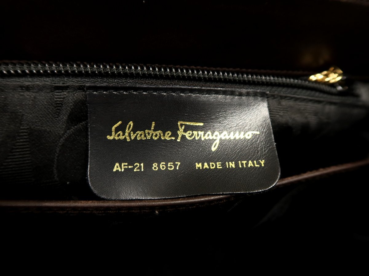 ●超美品●Salvatore Ferragamo フェラガモ●ガンチーニ●カーフ レザー 本革●ハンド バッグ●ブラウン●ゴールド金具●腕掛け●Js62267