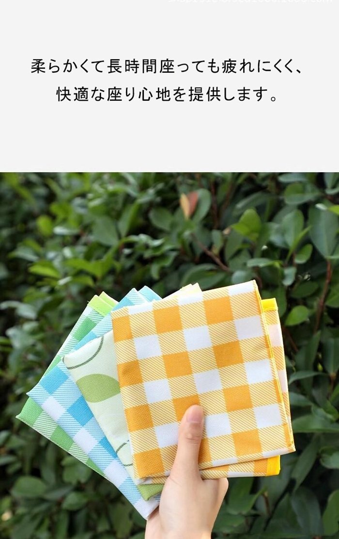 【快適な座り心地】このピクニック用のシングル座布団は、柔らかくて長時間座っても疲れにくく、快適な座り心地を提供します。