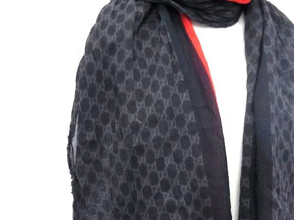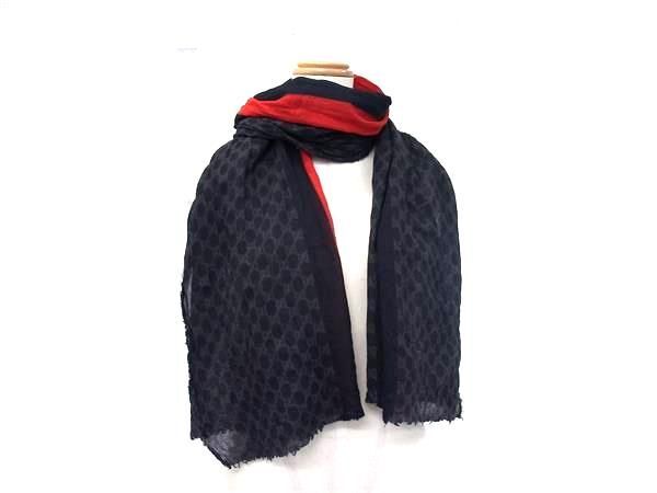 1円 GUCCI グッチ シェリーライン GG柄 スカーフ ストール ショール メンズ レディース ブラック系 FU5898