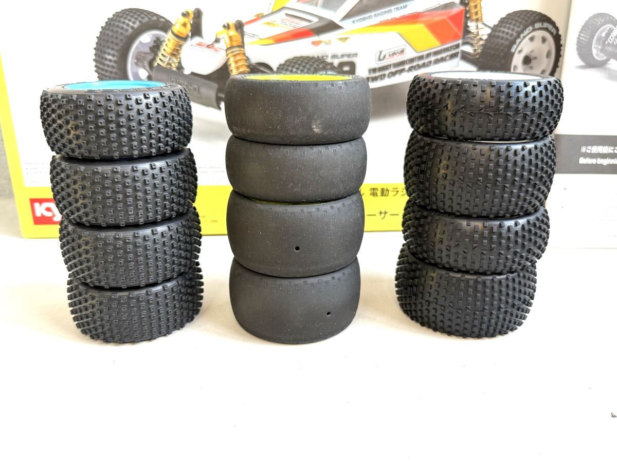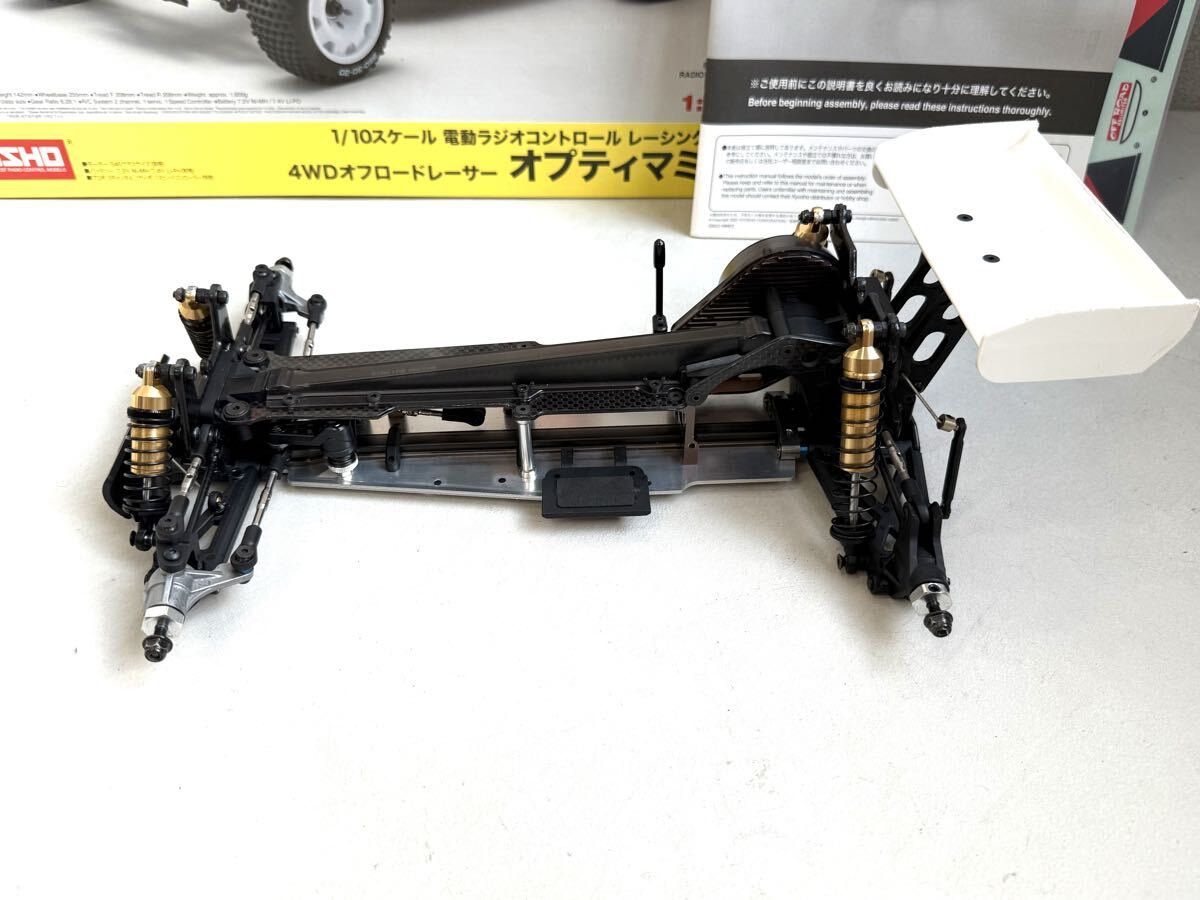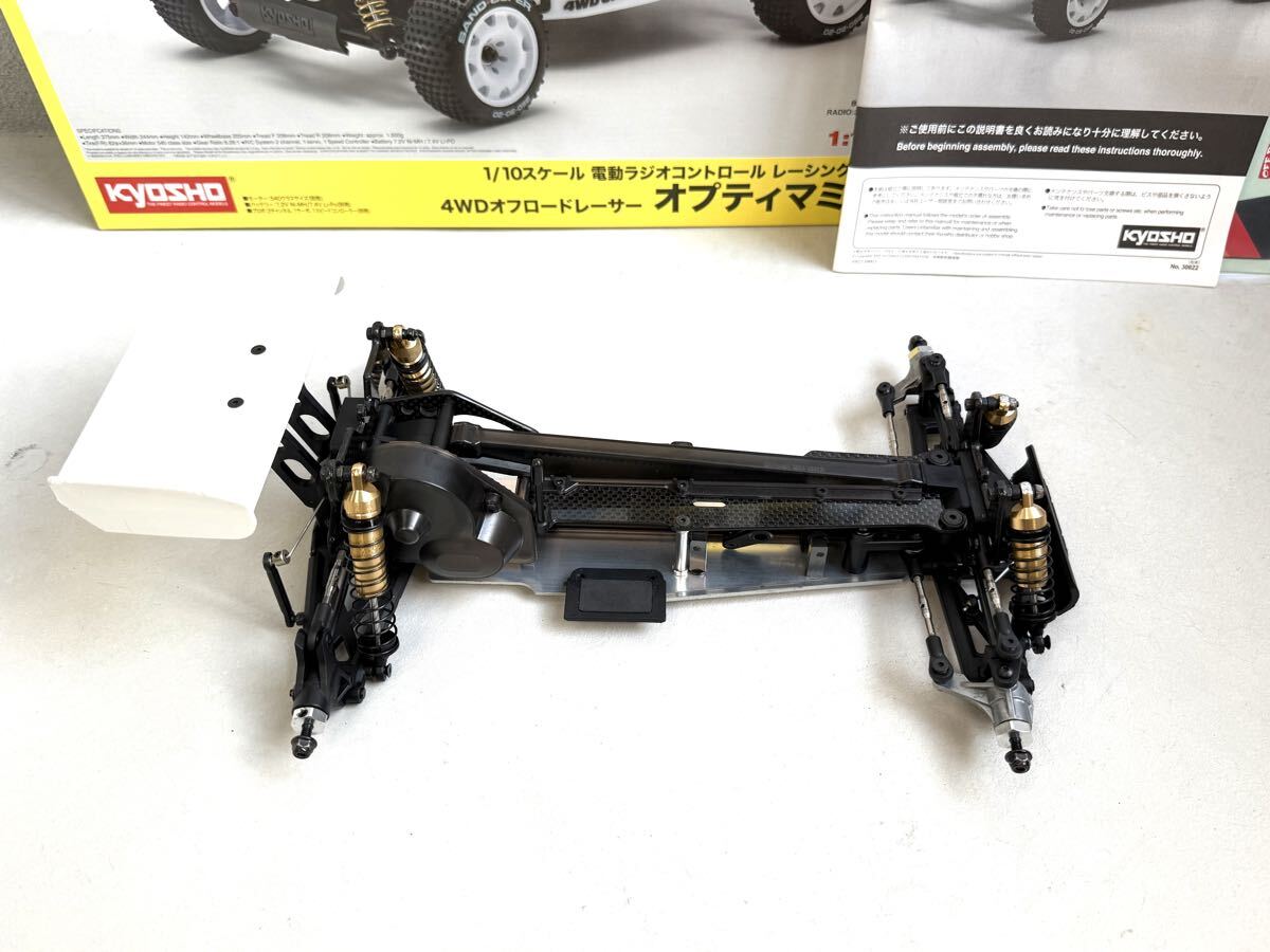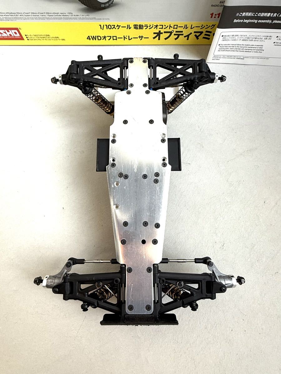 京商1/10EP4wdビンテージバギーオプティマミッドオプション多数装備の中古です。メインシャーシ以外はオプションのカーボンに変更済み、HDギヤ、CNCモータープレート、チタンターンバックル、ユニバーサルシャフト、前後スタビライザー等です。また、オフロードでの走行はしていません。新品パーツのフロントダンパーケース、スパーギア、ロアーアーム、ロッドエンド、ダンパーシャフト、サスピン、ベアリングなど、ファインセレクションスプリングがあります。ノーマルタイヤは未接着、2.2ダートホグタイヤはスリックとピン有りです。キット付属品は全て揃ってます。4WD レーシングバギー オプティマミッド 30622