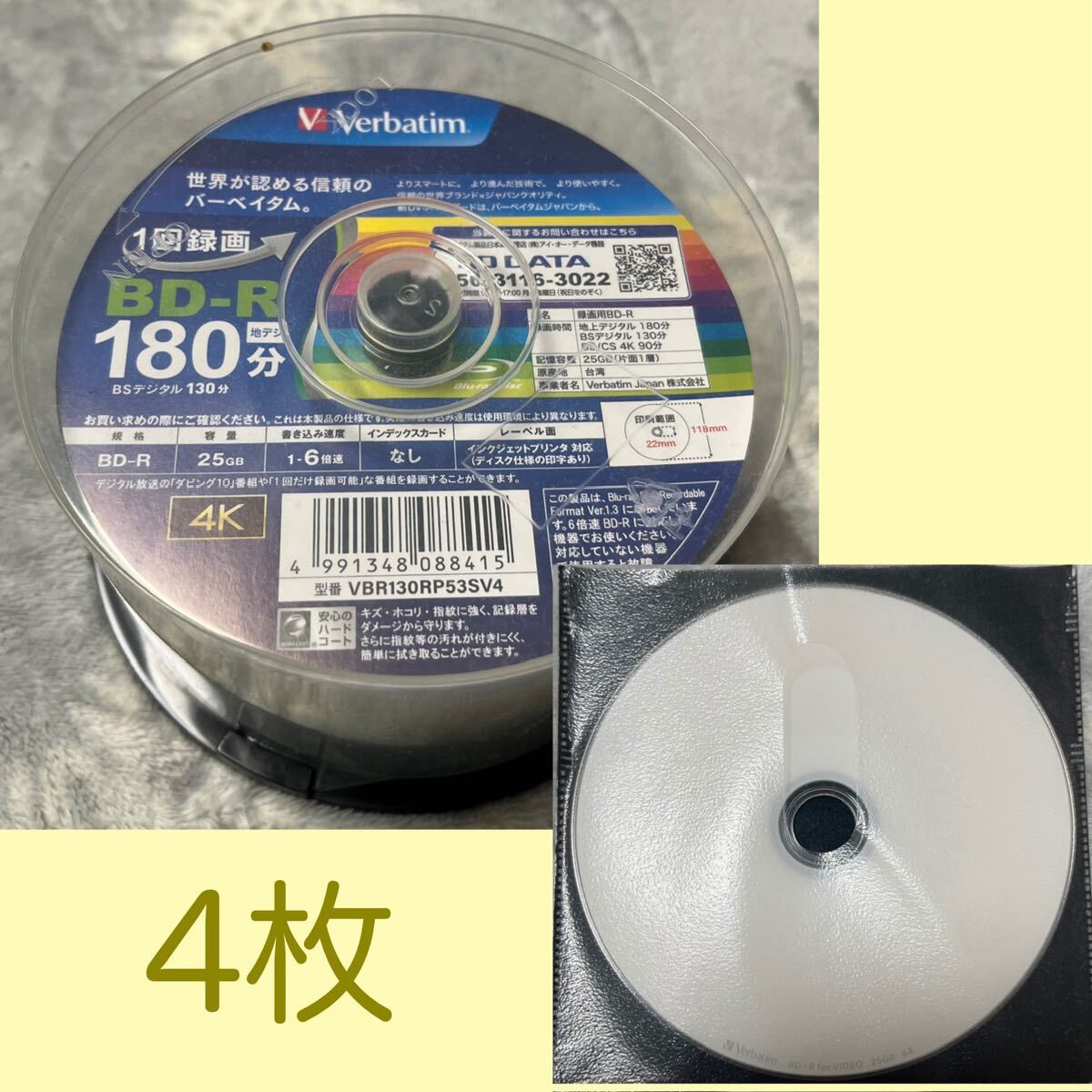 こちらは、バーベイタムの1回録画用BD-R の未使用ディスク4枚バラ売りです。