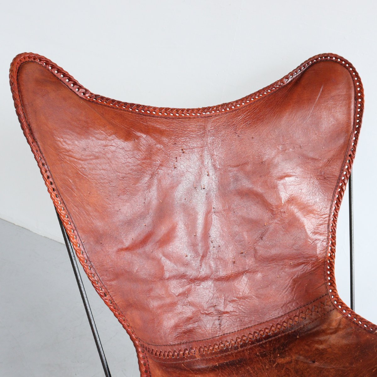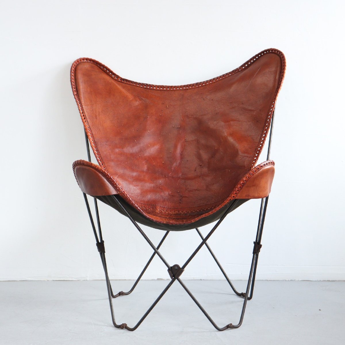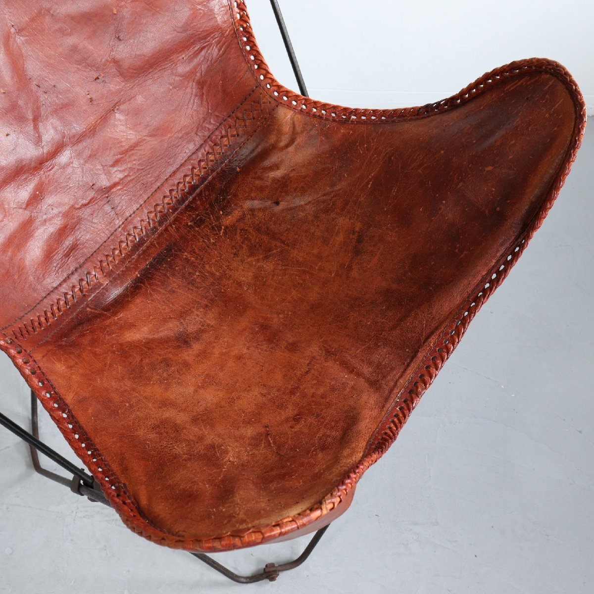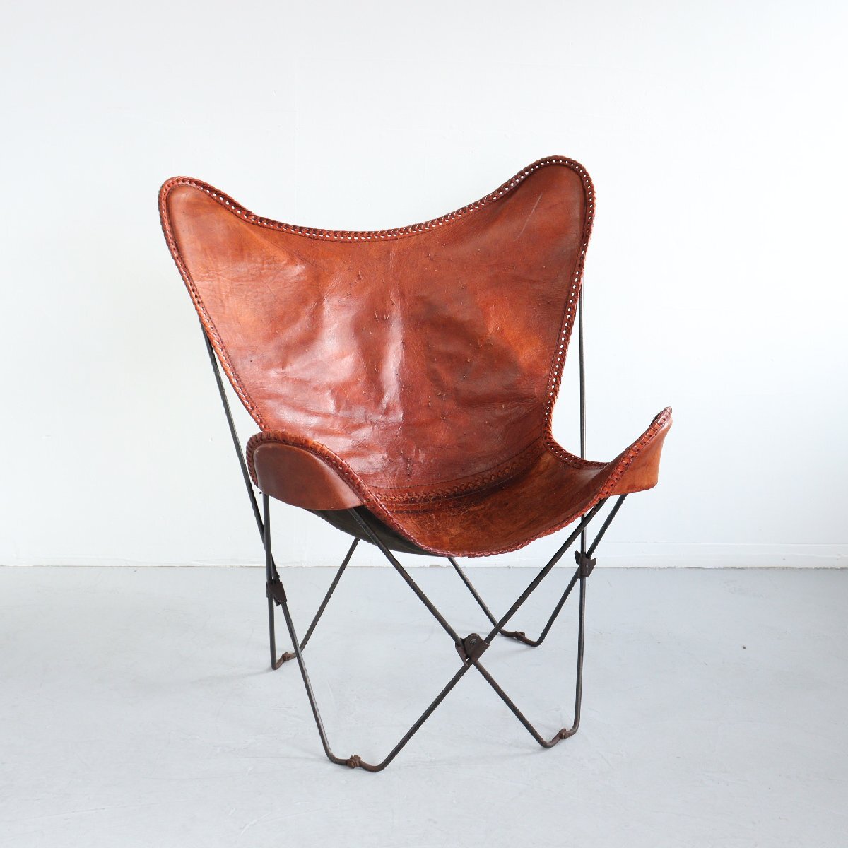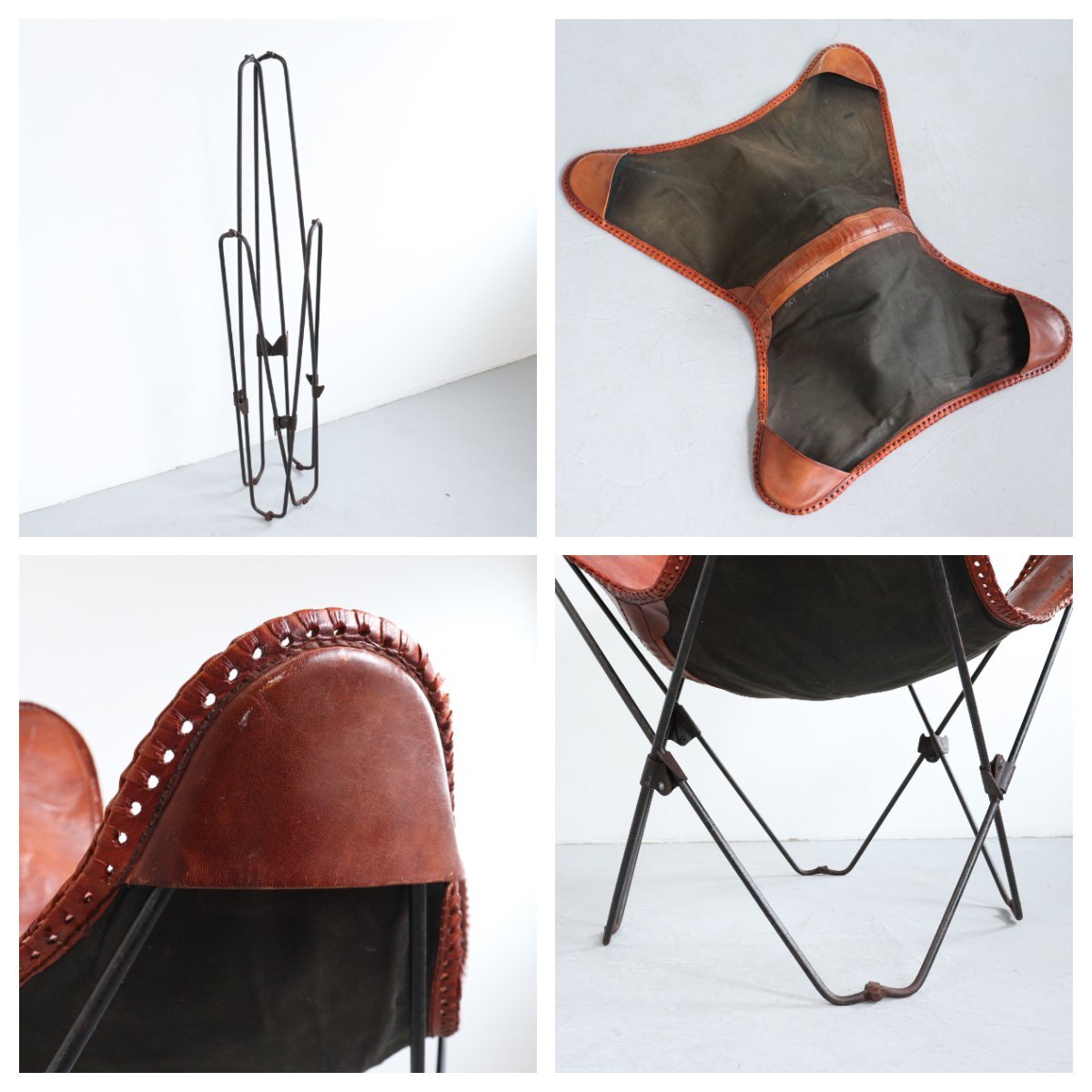| 商品説明 explanation | 1950年代頃よりKnoll社など様々なメーカーから製造された、人気のバタフライチェアです。※メーカーは不明 1930年代に3名のアルゼンチン人のデザイナーによってデザインされ、それぞれの頭文字をとって 「BKFチェア」とも呼ばれています。 まるでハンモックのように包み込まれる様なフィット感を味わうことができます。 フレームは折り畳み可能で牛革を使用しており、経年によって網込みや革の風合いがヴィンテージらしい雰囲気になっています。 ショップやご自宅のインテリアにいかがでしょうか。 |
