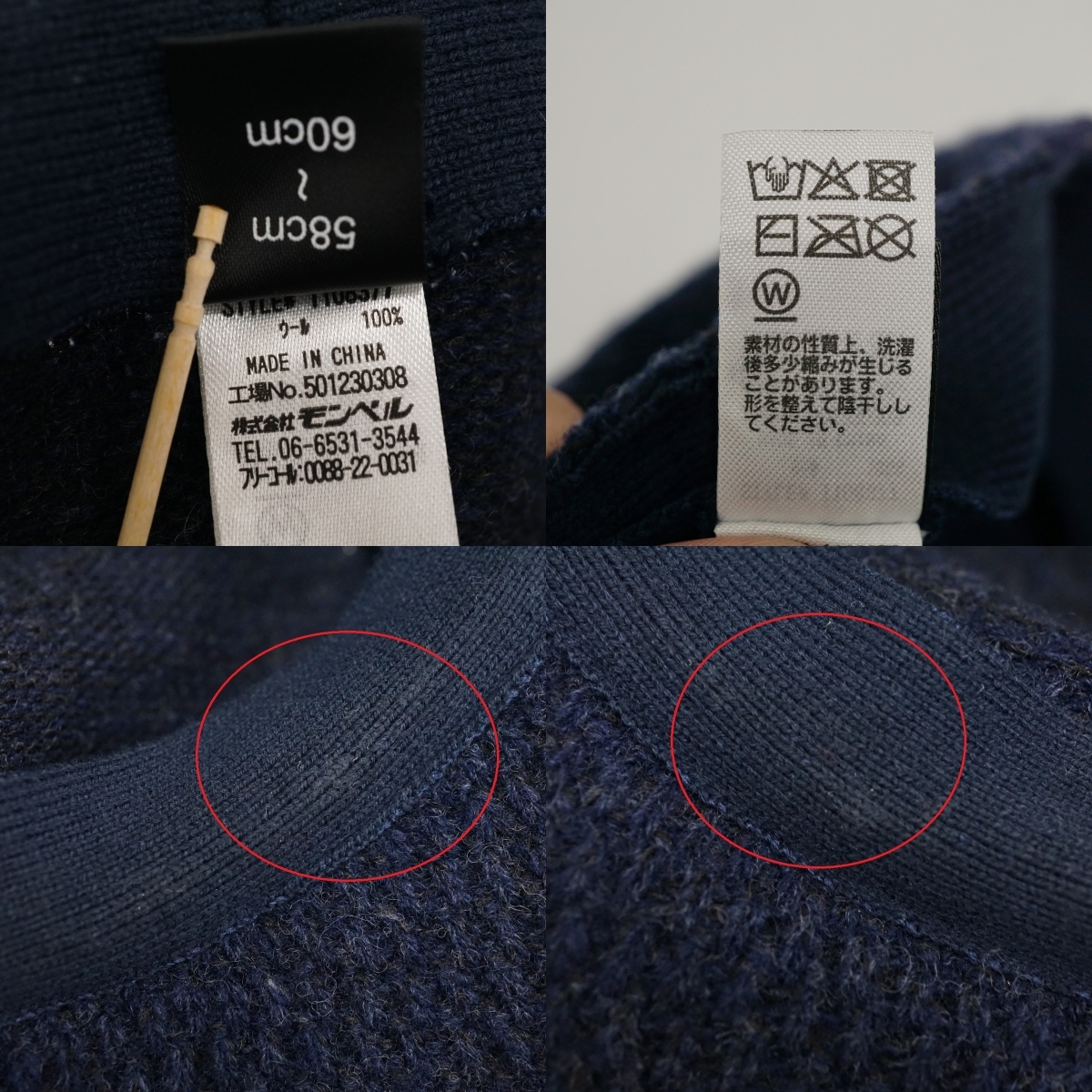★☆mont-bell モンベル ウールニット ビルキャップ USED美品 ネイビー 帽子 #1108377 ウール Lサイズ アウトドア ユニセックス X8242☆★