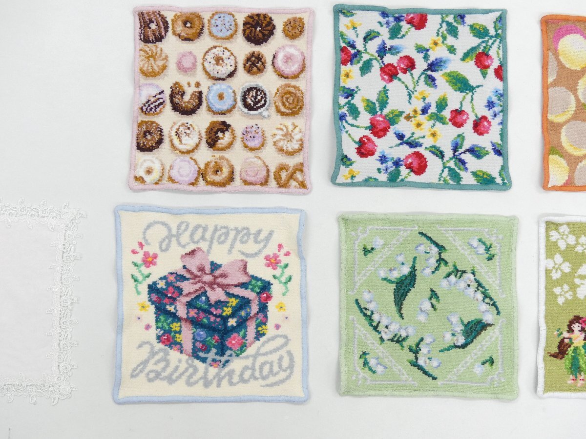 【FEILER】 ①ハッピーバースデー ②LOVERARY モグモグドーナツ ③スウィングチェリー ④ピュールミュゲ ⑤マナマナ ⑥ドット模様 【近沢レース店】 ⑦タオルハンカチ 色はホワイト 送料込みのため、他商品との同梱はできません。ご来店受け渡しの場合も送料分の返金はできません。 |