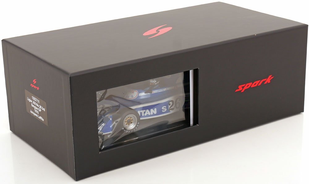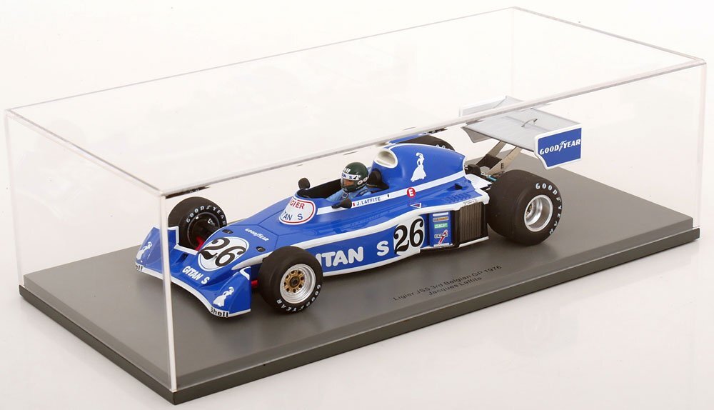 Spark 18S711 1/18 ミニカー レジン プロポーションモデル 1976年ベルギーGP 第3位 リジェ LIGIER - JS5 No.26 3rd BELGIUM GP 1976 JACQUES LAFFITE アクリルケース付