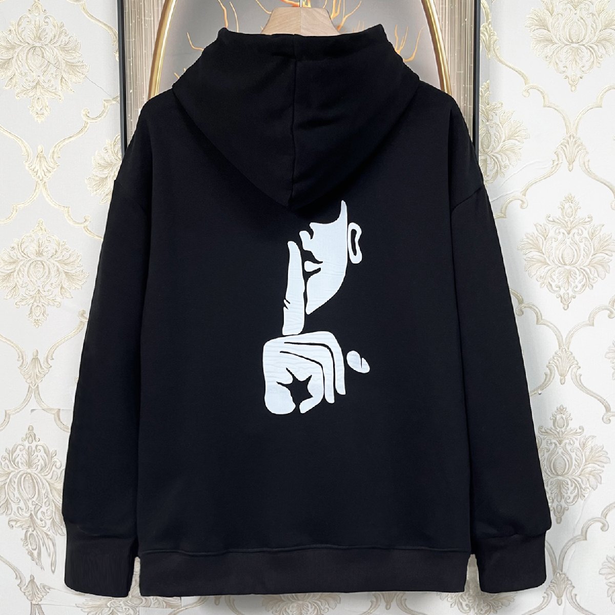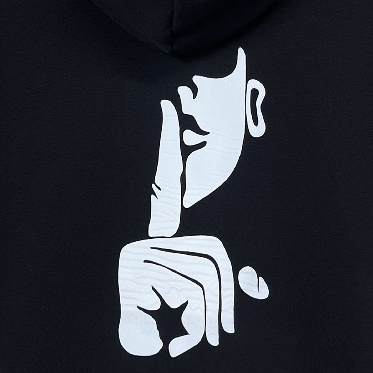 頭に合わせできるようにデザインされたフードは、紐が付いていて、調節による自分好みのファッション感が作れます。「沈黙ジェスチャー」と現代美術が融合したシンプルながらオシャレなプリントは人にクールな印象をプラスしており、どのアイテムと合わせても様になります。クリーンなカラーはどんな肌色にもなじみ、知的で落ち着いた大人の魅力を演出します。