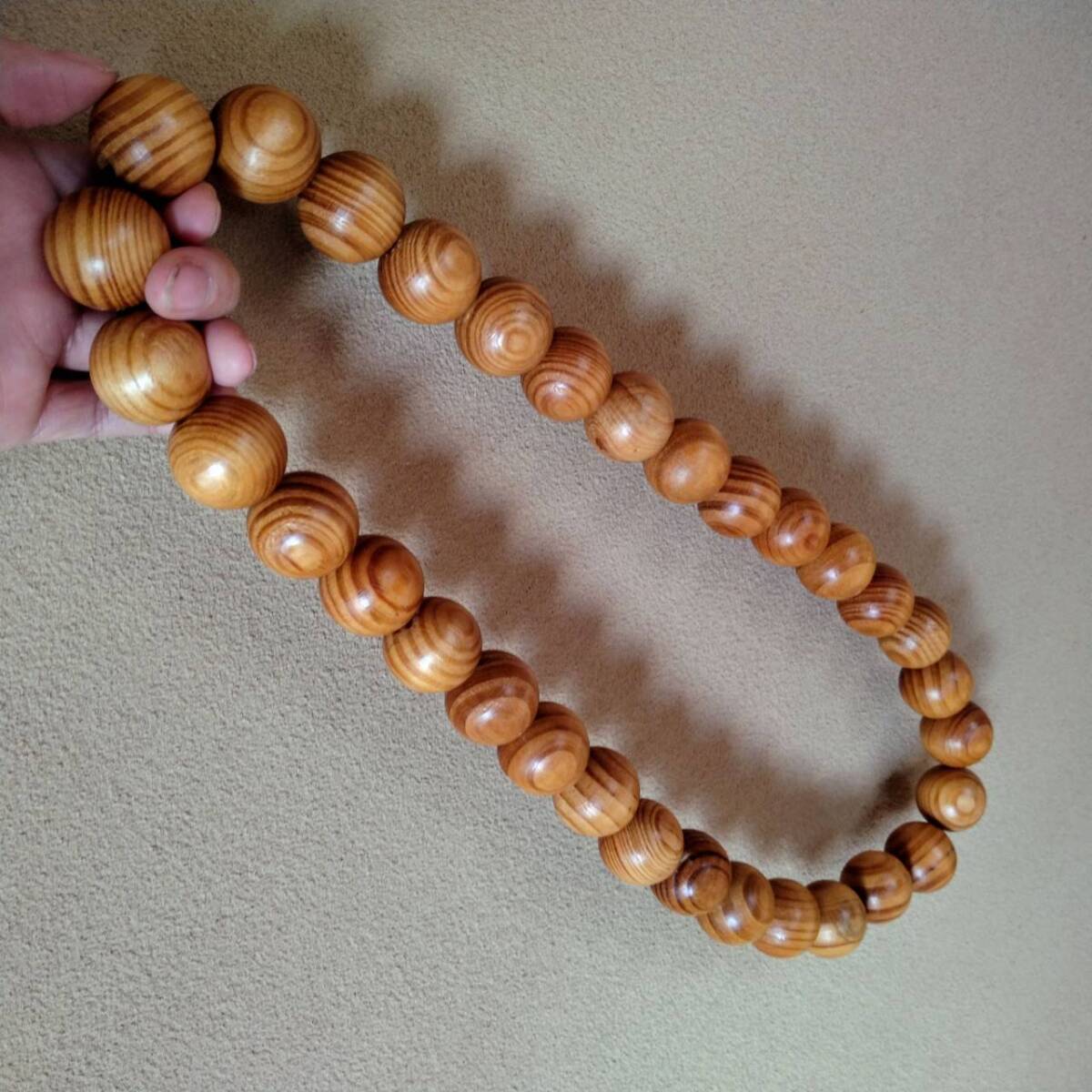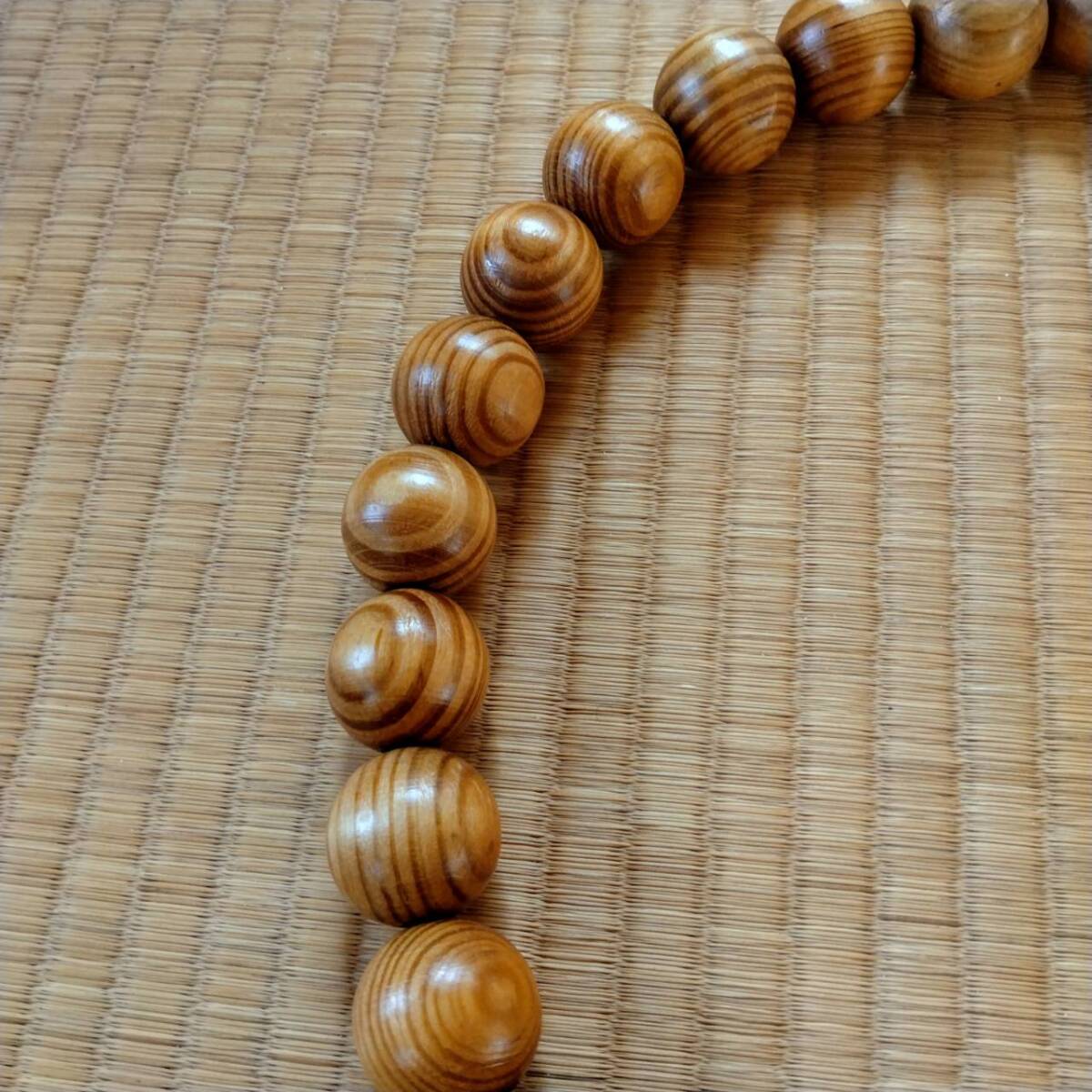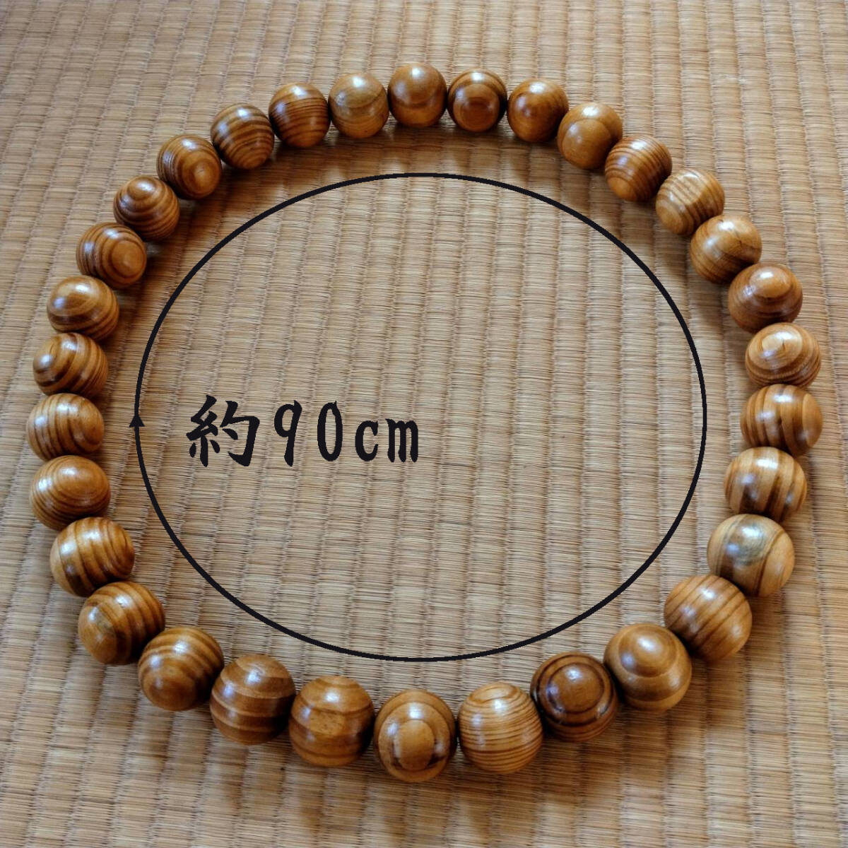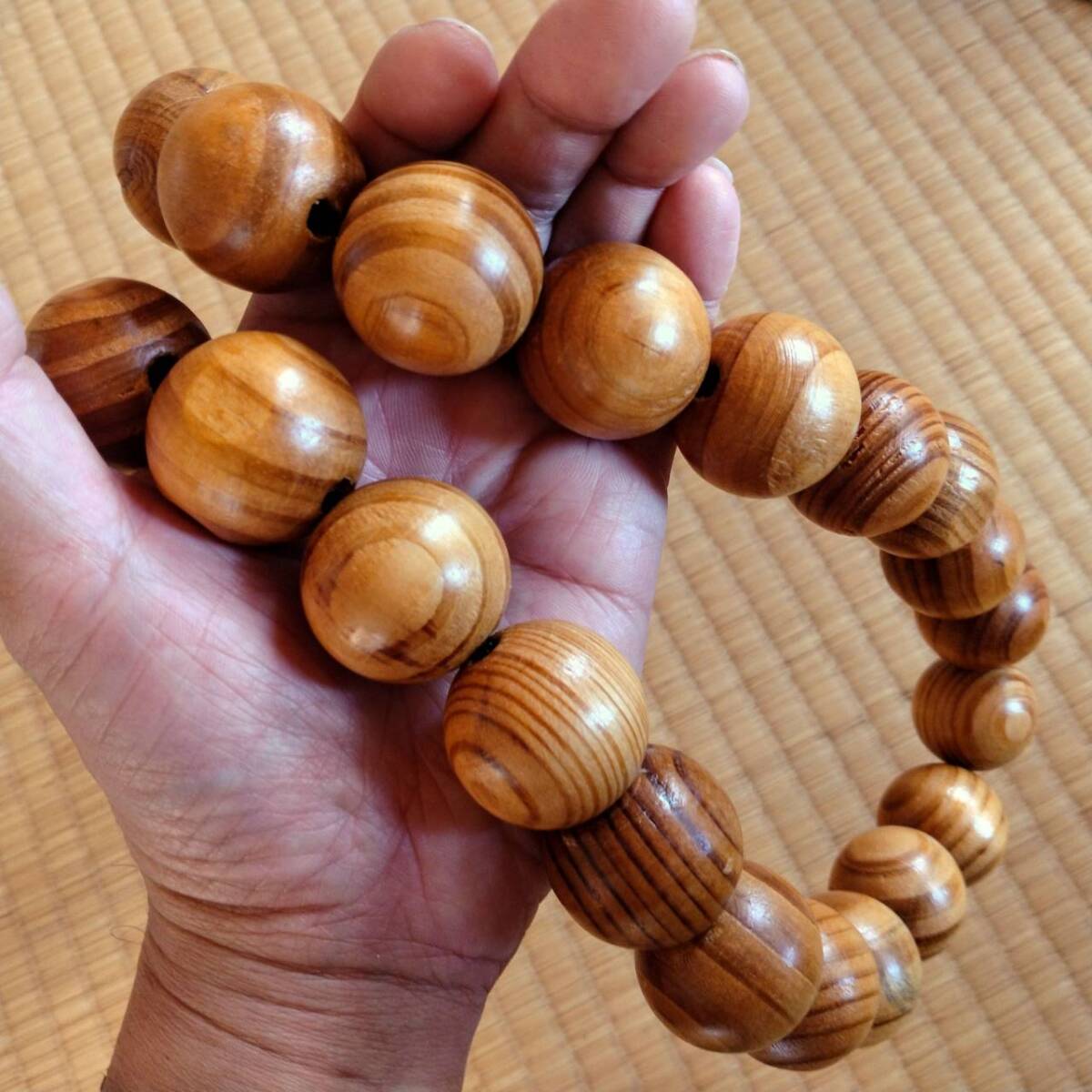 木目の美しい大きな丸い珠で構成され、仏教や瞑想の際に使用されることが多く、宗教的または精神的な意味合いを持っています。