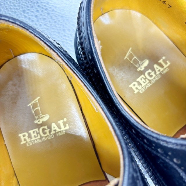 ご覧いただき、ありがとうございます。 オシャレで高級感のあるREGAL リーガルのビジネスシューズです。 デザイン性:機能性共に定評のある商品です。 1足押さえてあるとファッションの幅も広がり大活躍するお勧めの商品です。 中古品のため、スレや傷、ヨゴレ等ありますが、その分お値打ちにしております。 詳しい状態は画像でご確認ください。 商品のサイズについて 表記サイズ 24.0EE アウトソール全長 約27.3cm 全幅 約10.0cm (素人採寸) ●状態①「外観」 履きジワ、着用に伴う擦れ、傷がございますが、着用に支障はございません。 くわしくは画像で確認ください。 ●状態②「ソール・インナー」 インソール内ロゴ残っています。 カカトの削れ等、詳しい状態は画像でご確認ください。 ●その他・付属等なし、シューズキーパーは撮影用です。 | |||