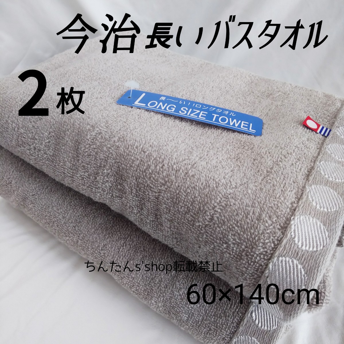 通常のバスタオルより20センチ長く、若干薄めのバスタオルになります。