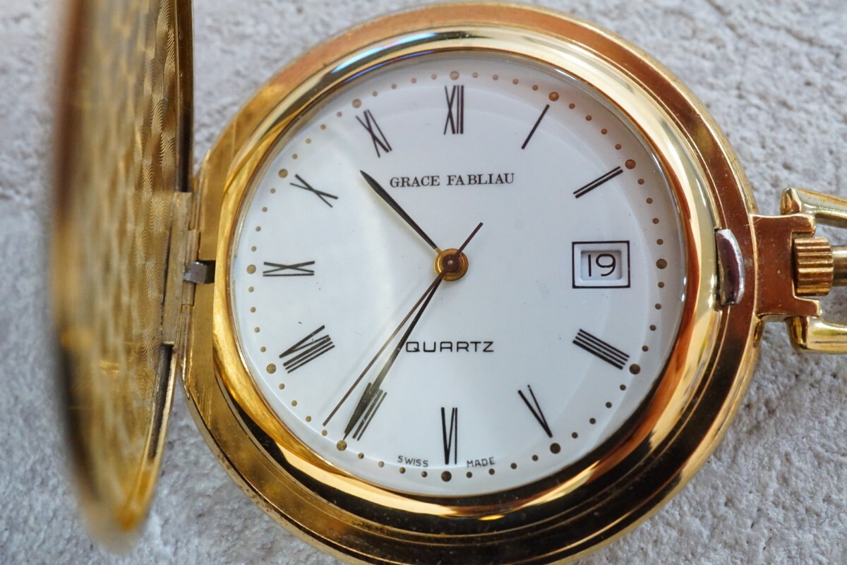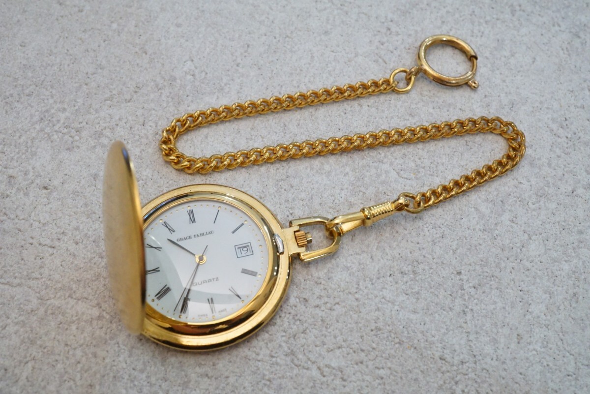 F814 GRACE FABLIAU/グレースファブリオ SWISS ゴールドカラー 懐中時計 アクセサリー ヴィンテージ スイス ブランド クォーツ 不動品