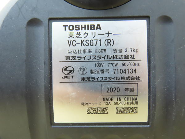 東芝・掃除機・2020年製・サイクロンクリーナー・VC-KSG71・180W・中古品・152361