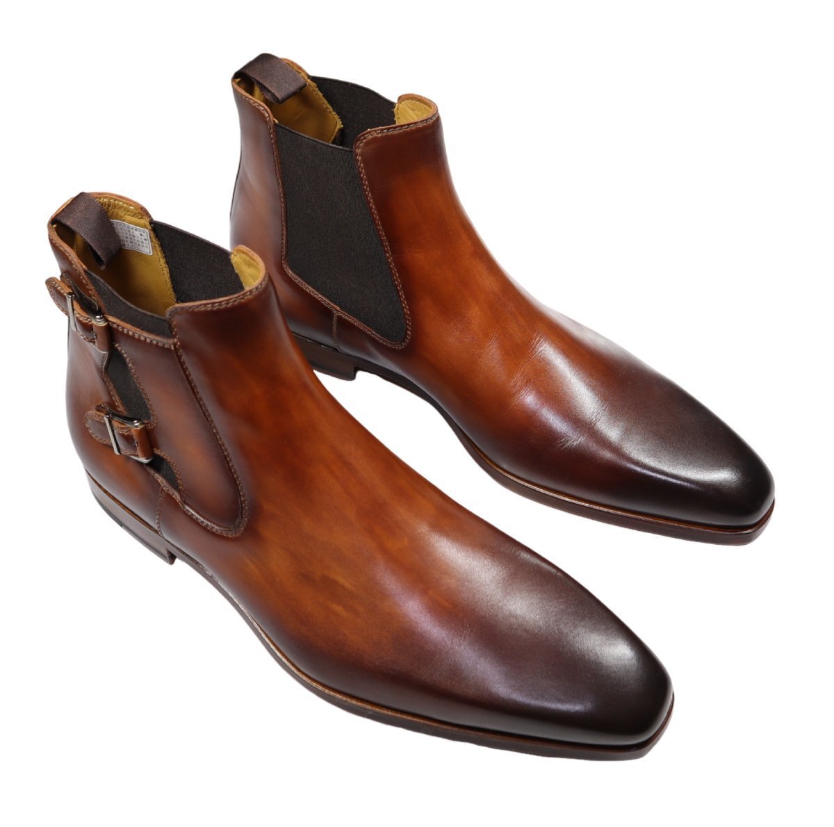 スペイン・バレンシアの南西約 100km、紳士靴の聖地であるアルマンサにて1954年に創業した、スペインを代表する高級靴ブランド『マグナーニ』。その大人の色気あるデザインと芸術的グラデーションが特徴のダブルモンク型サイドゴアブーツ。