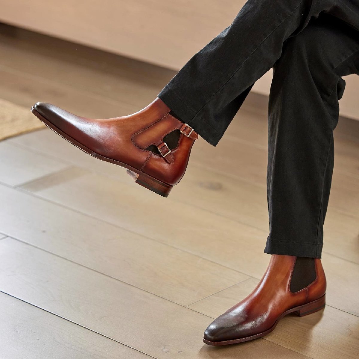 大人の色気あるデザインと芸術的グラデーション!【 MAGNANNI / マグナーニ (西 】ダブルモンク型 ロングノーズ サイドゴアブーツ