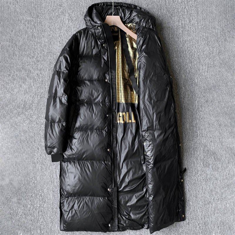 新品 DCKMANY 上質 ダウンコート メンズ 着丈100cm ロングコート フード付き ダウン90% 軽量 防寒 ダウンジャケット 冬服 艶黒C9827-2XL