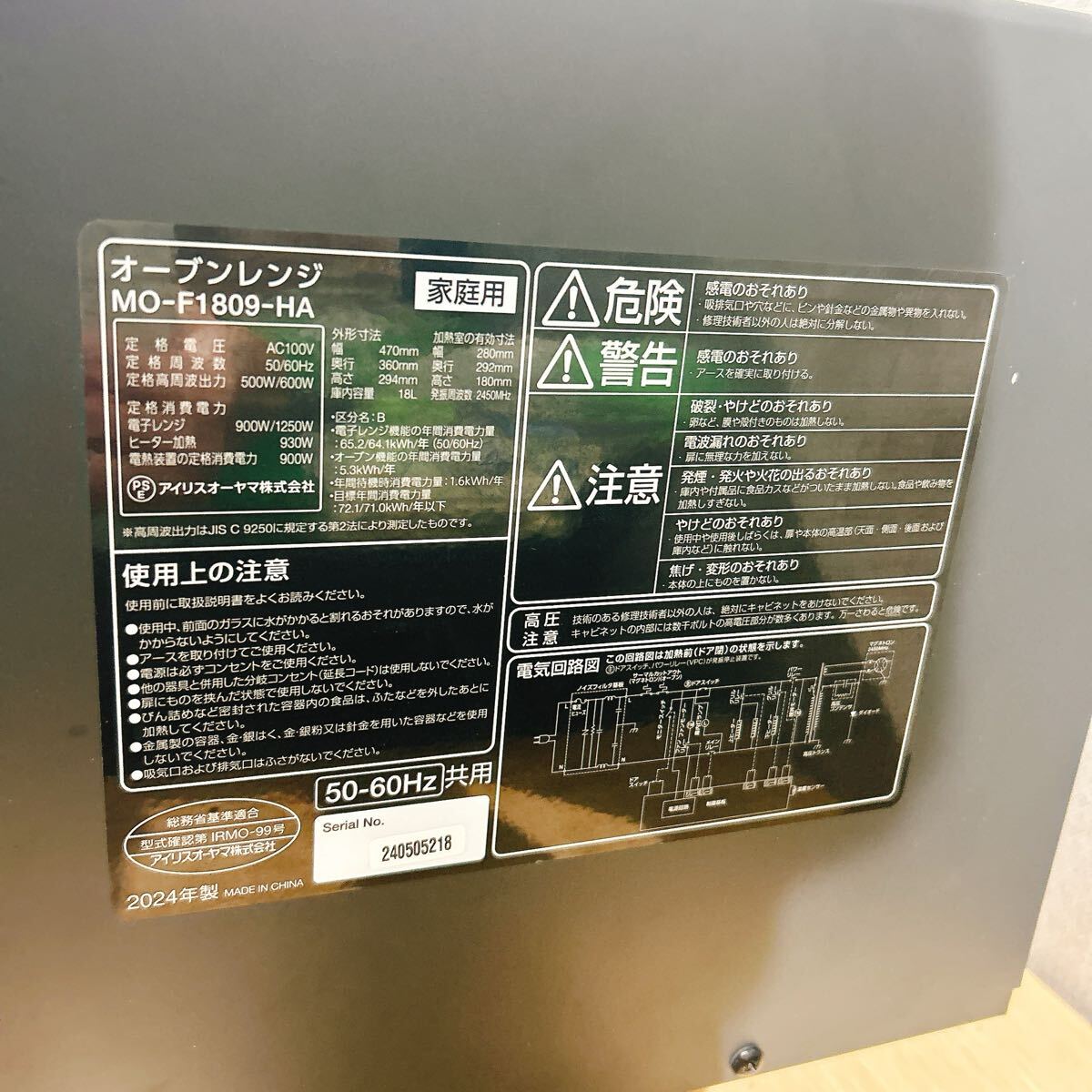 IRIS OHYAMA アイリスオーヤマ MO-F1809 オーブンレンジ 電子レンジ ブラック 2024年製 動作品