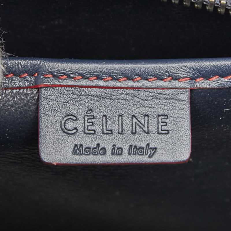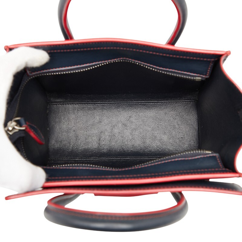 セリーヌ ラゲージ ナノショッパー ハンドバッグ ネイビー レッド レザー レディース CELINE 【中古】