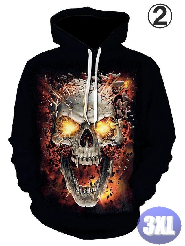 フード付き ドクロパーカー カラー2 3XL トレーナー アウター 防寒 n718
