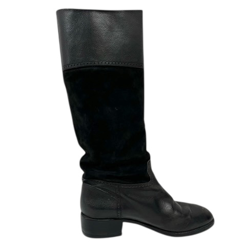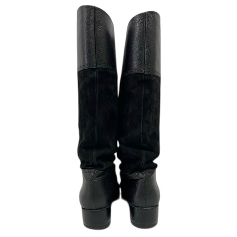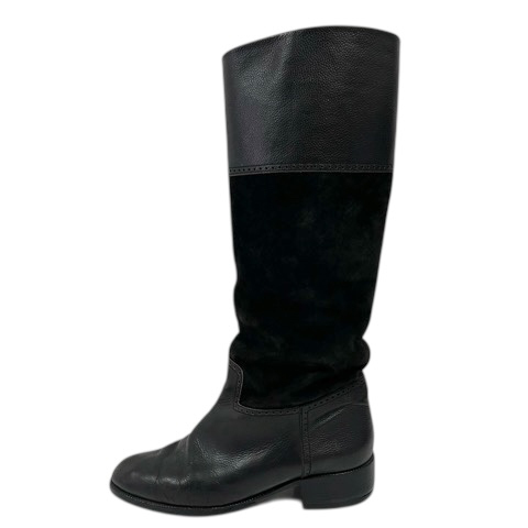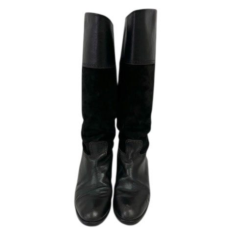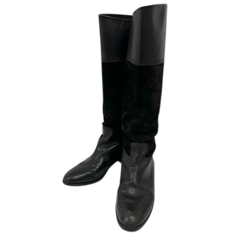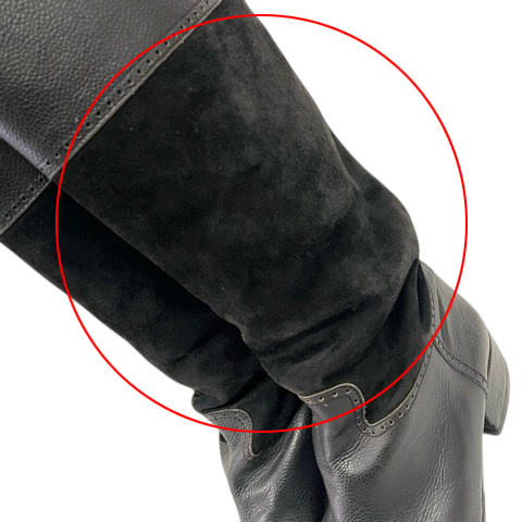 ビームス BEAMS ロング ブーツ ラウンドトゥ チャンキーヒール スエード 切替 無地 サイズ:38 24~25cm位 黒 ブラック レディース