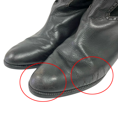 【状態】この商品には下記のようなダメージがあります。 ・つま先部分を中心にレザー生地の剥がれ、ひび割れ、汚れ、傷等のダメージあり ・スエード生地のへたり、擦れ、傷あり ・かかとを中心にソールの擦り減り、変色等の劣化あり、ソール交換跡あり ※全体的に中古品としての使用感と上記のようなダメージがありますが、通常使用には支障のない商品です。 掲載写真や記載内容をご確認いただき、ご理解の上ご購入ください。